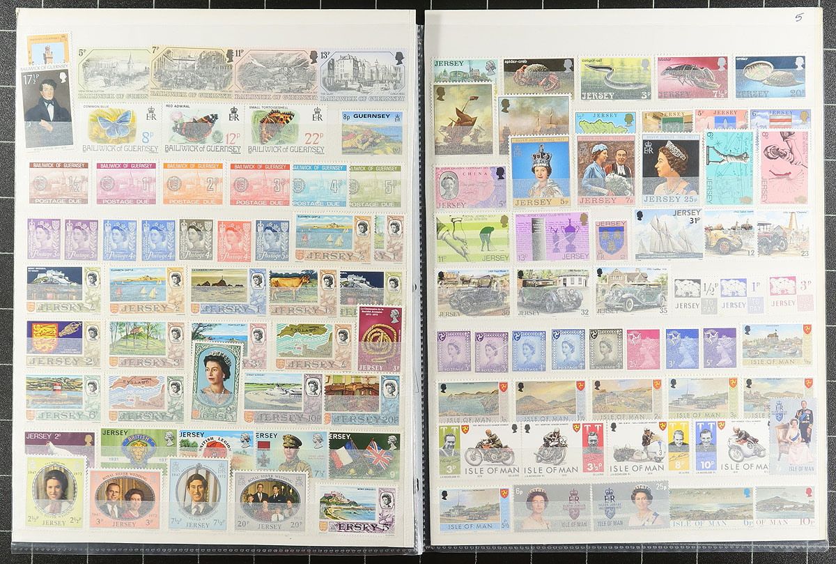 Guernsey, Alderney, Jersey and Isle of Man are all represented in this estate leftover, including some mounted collections, stockpages, cards as well as a small handful of presentation folders. Most appear to be up to 2000 with more mint than used, as you would expect, and a couple of complete booklets. As this material has several origins, some duplication can be expected, the mint are mostly never hinged, and no obvious faults were noted. A nice bundle perfect to expand your British Europe collection. Estimate =