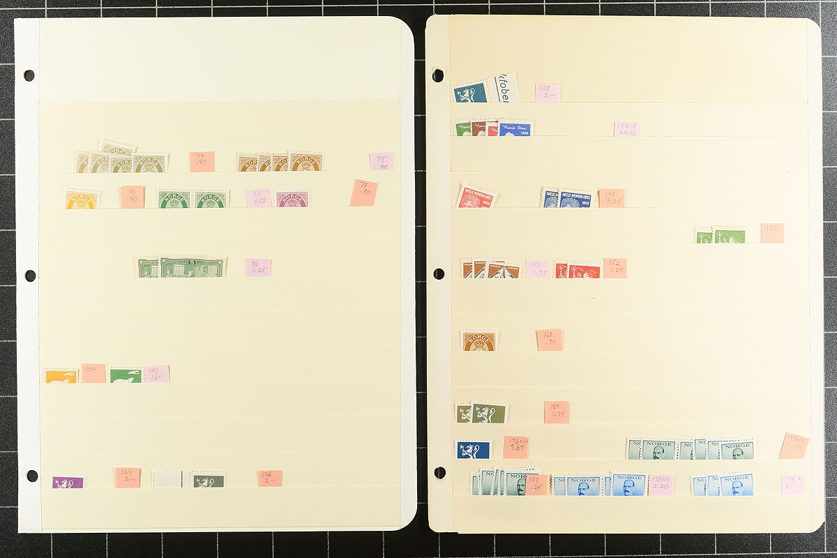 20th century mint regular issue collector’s accumulation neatly laid out on 20 manila stockpages. Includes better singles and sets with up to $15.00 catalogue value, and up to 6 of a type (or set), with a mix of hinged and never hinged. A good mix of definitives and commemoratives, all identified by Scott number and most with (older) catalogue values. Some better that stood out include: #132-5, #182, #200A, #212, #238, #382-6, #426 (x5). A couple bonus items include a forgery of #218 and a couple of modern "Bird" complete booklets. Estimate =
