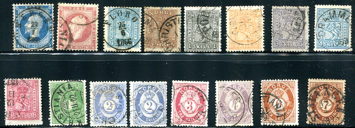 An intriguing selection of sixteen different "skilling" currency issues, including "Coat of Arms" and "Post Horn" issues. Better condition than normally seen, a few with very nice cancellations and a couple with Scott listed shades. Better singles include #10, #13, #20, #21. 2024 Scott US$905.00 =