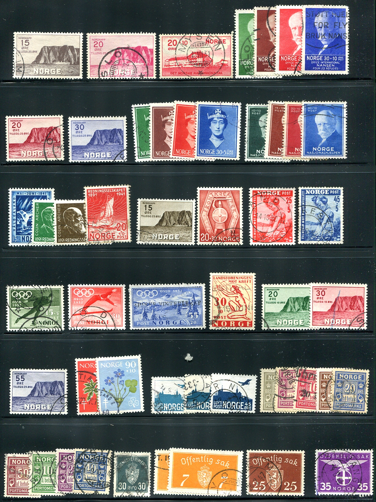 A starter pack of used "Back of the Book" the best being the semi-postals, with some nice "North Cape" singles (#B4, #B10, #B54-B56), a trio of early sets. A trio of airmail, some postage dues and a small group of officials (#O11, #O11a). An attractive group. 2024 Scott US$349.85 =