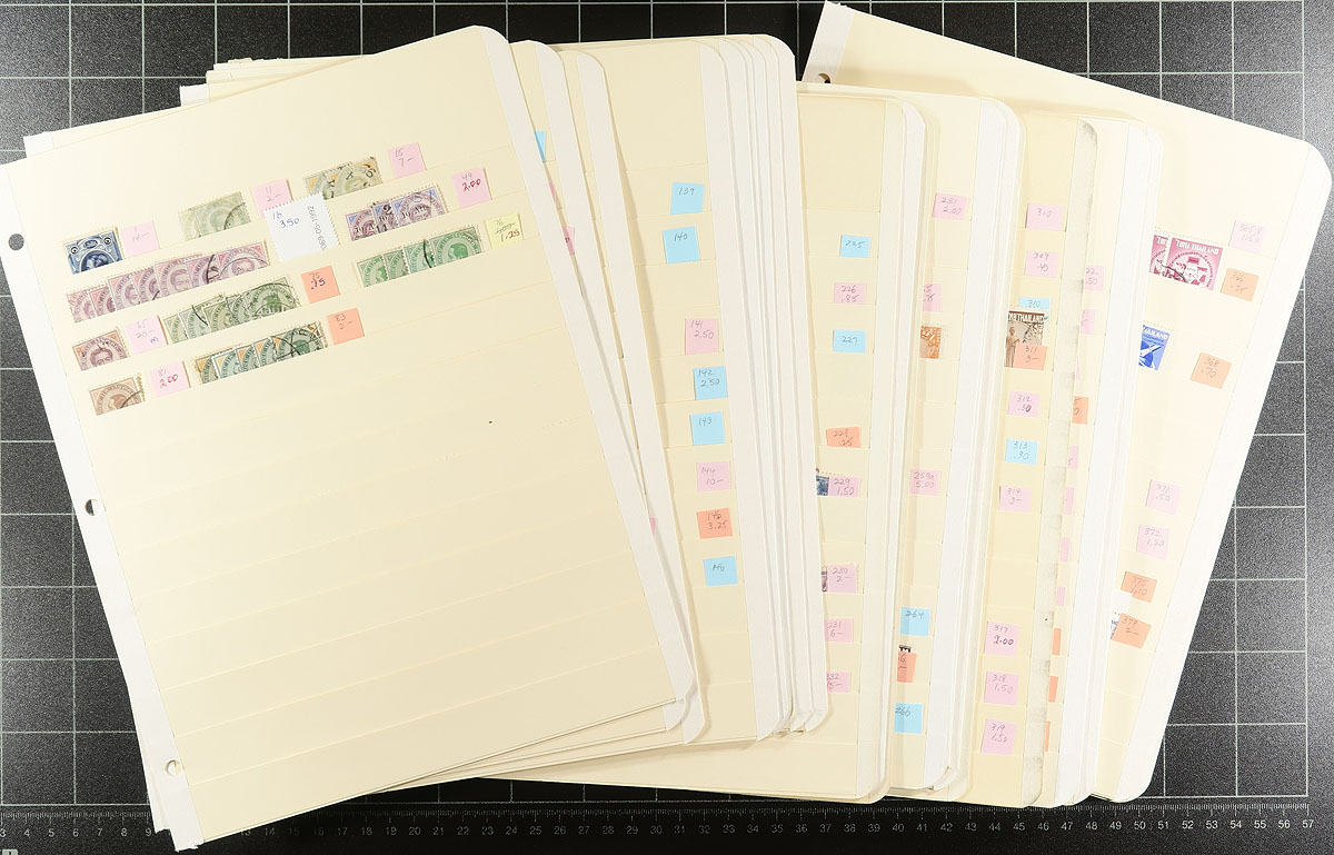 Collector’s duplicates Part #1. A "once in a long while" opportunity to pick through an extensive and well organized, accumulation of mostly used issues up to the 1960s. Up to 15 of a type, with singles cataloguing $3.00-$15.00 found everywhere. Nicely displayed on 26 manila stock pages. There are lots of readable cancels, too. Build your collection and sell the balance. Very clean material with few faults. Estimate =