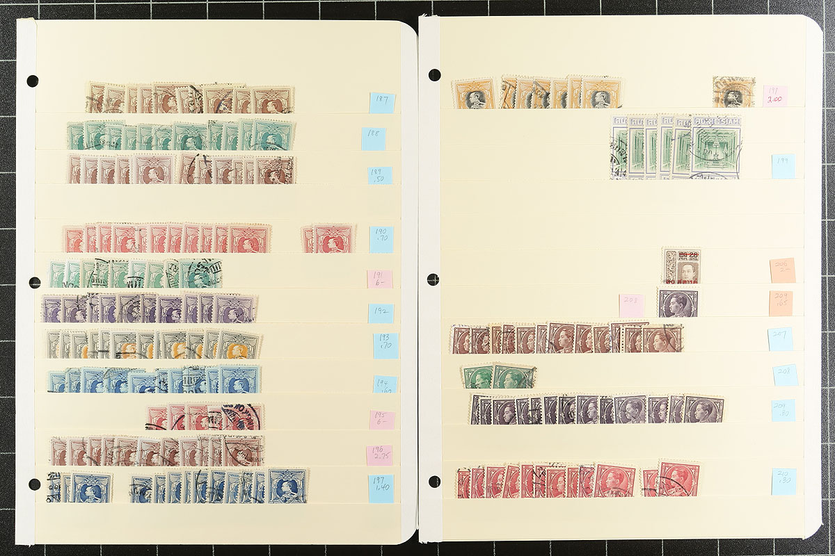 Collector’s duplicates Part #1. A "once in a long while" opportunity to pick through an extensive and well organized, accumulation of mostly used issues up to the 1960s. Up to 15 of a type, with singles cataloguing $3.00-$15.00 found everywhere. Nicely displayed on 26 manila stock pages. There are lots of readable cancels, too. Build your collection and sell the balance. Very clean material with few faults. Estimate =