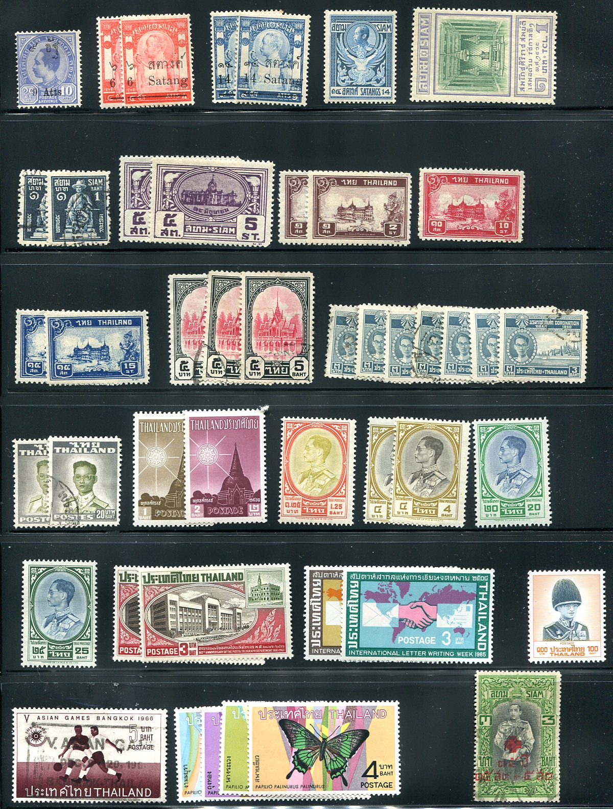 A page with a selection of mostly mint pre-1970's issues plus a nice semi-postal. A bit of duplication can help you recoup your costs. There are better throughout, such as #143 (mint), #253 (3 used), #361-362 and the butterfly set #509-512. Some Siamese beauties here! 2024 Scott US$841.40 =