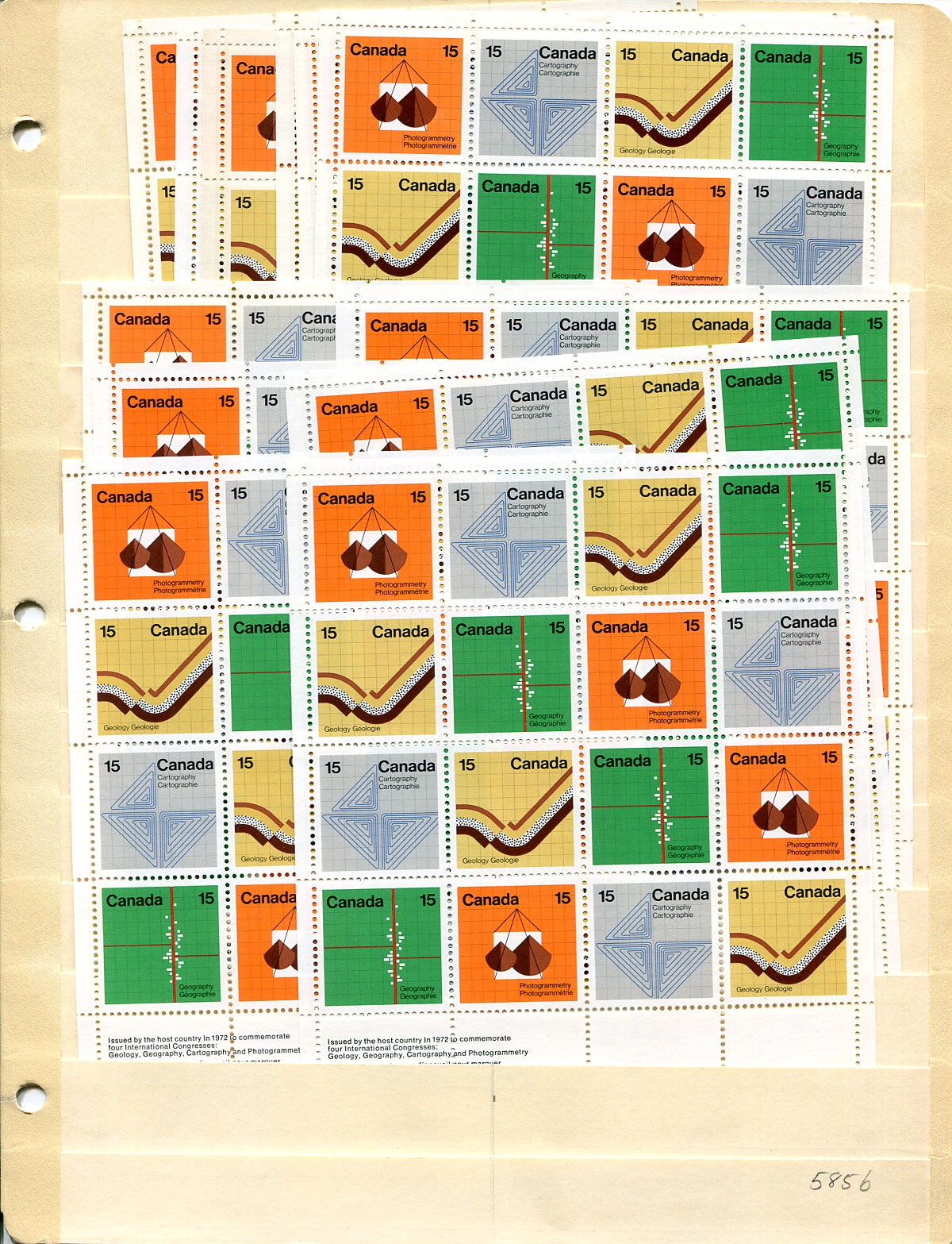 Mint Holding of Canada’s first sheetlet, the Geological Congress issue confused collectors. Some stuck with single stamps, others with plate blocks and some with the sheetlet of 16. By the time they realized how many copies the average collector would need, the issue was off sale and prices almost immediately began to rise. This lot of three stockpages has a mix of complete mint never hinged sheetlets of 16, in both the regular and "tagged" version. A total of 33 "philatelic" sheetlets in total, plus a smattering of blocks and plate blocks which are not counted in the total catalogue value. 2024 Unitrade =
