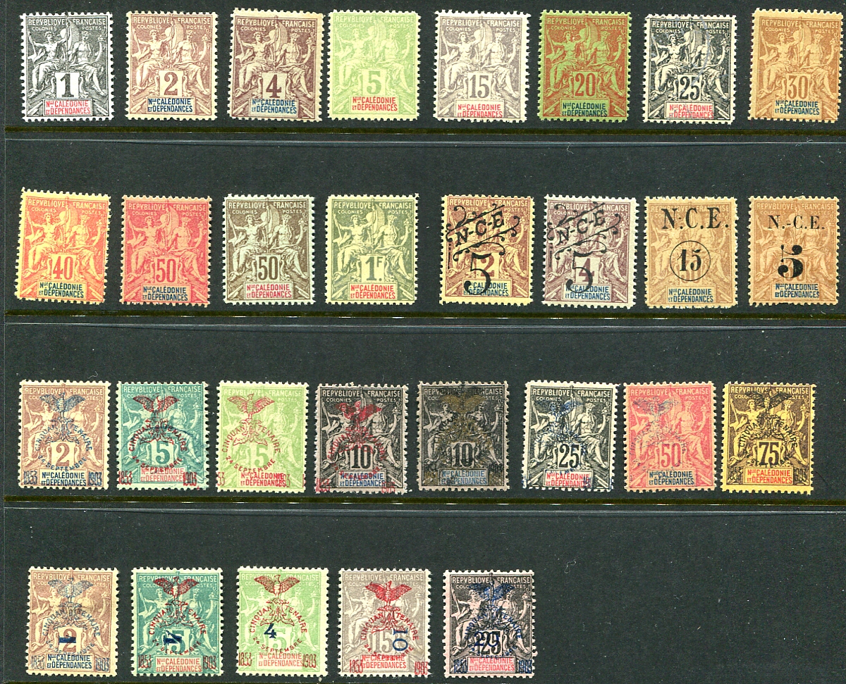 An attractive page with 29 different examples of the "Navigation and Commerce" issue, including much of the basic issue of 1892 (including #55 and #58) with four being revalued. One half of the set with the "Jubilee" overprint is here (#78, #79), finishing with five stamps overprinted for the "Jubilee" and then subsequently revalued. There are four revalued and all but two of the values with the "Jubilee" overprints. Fresher than normally seen, but use a cautious eye as forgeries exist. 2024 Scott US$621.90 =