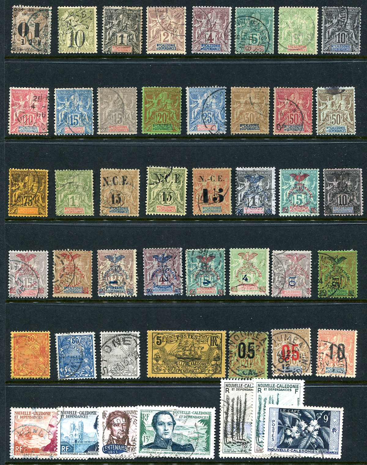A page with difficult to find used issues from this former French Pacific colony, including some nice cancels. There are a couple of overprinted colonial issues (one is an invert). The strength is in the "Navigation and Commerce" issue. with denominations to 1 franc and a trio of revaluations. The basic set is followed by a selection with "Jubilee" overprints, including some which were subsequently revalued. The lot finishes with a couple of issues into the 1950s. A couple of minor faults might be expected, but otherwise a very nice group. 2024 Scott US$385.95 =