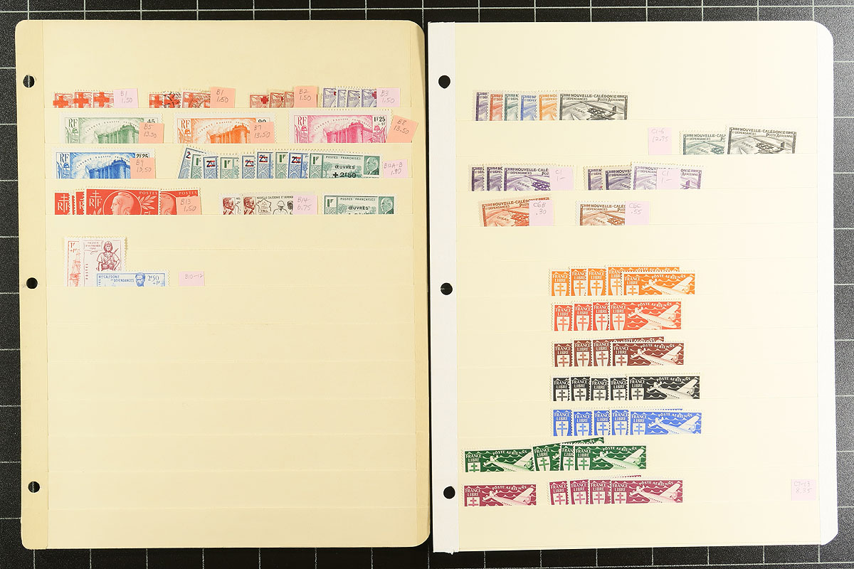 Nine pages of mostly post-WWII back of the book, a mix of mint and used on nine manila stockpages. Perfect as a way to build a collection or a stock as the material is already nicely sorted and identified with light duplication throughout. There is some "Bastille" semi-postals, a strong air mail section with issues into the 1990s (and lots of individual stamps cataloguing $10+), and more scattered better such as #CB1, #J7, #O12. Condition is good. Items are priced, we have adjusted to an estimated catalogue value. 2024 Scott US$500.00 =