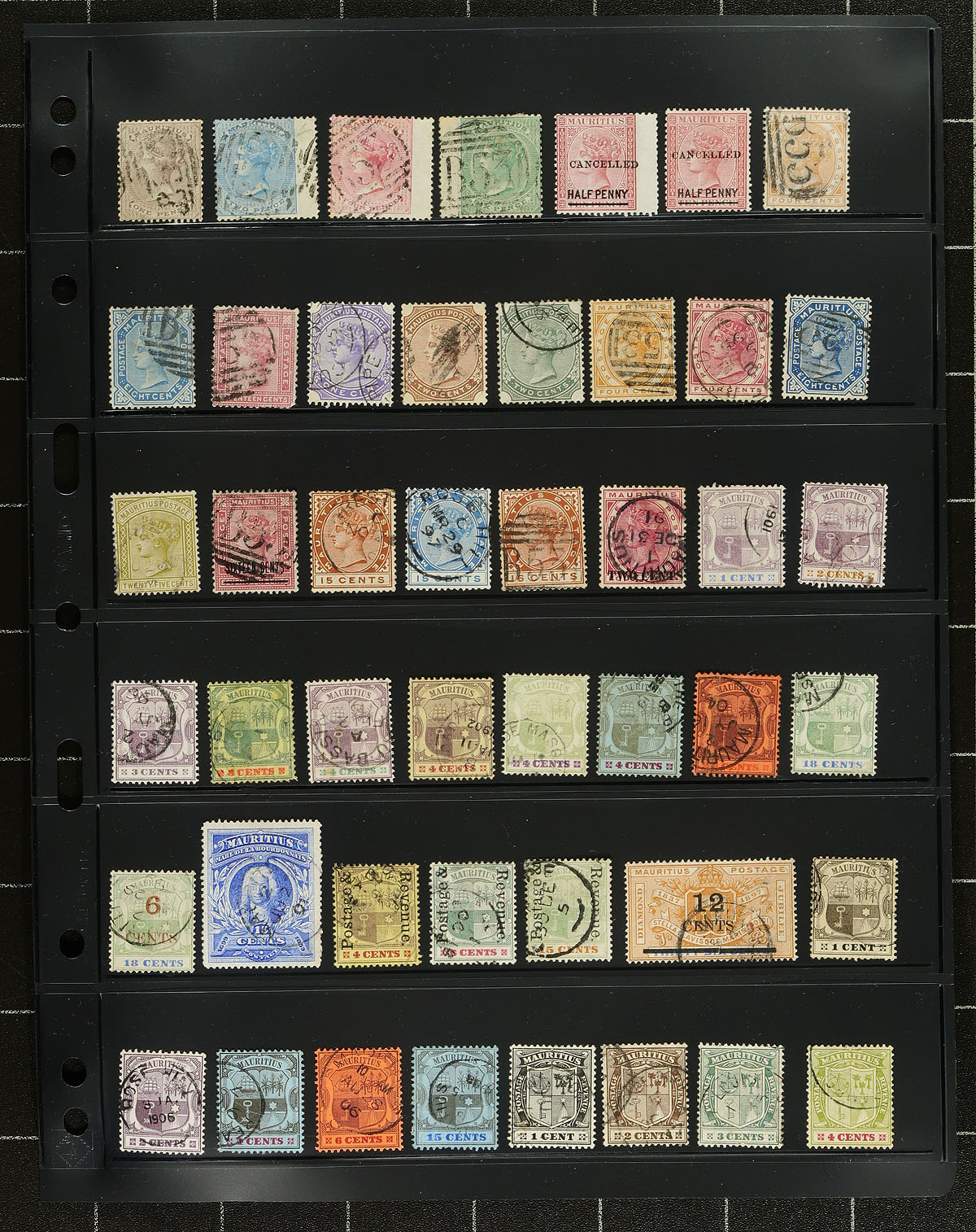 Two-page used material from Queen Victoria to early Queen Elizabeth II, with a number of nice cancels. Includes some wing margin copies (the two stamps overprinted "Cancelled" are counted as mint). Only a couple of minor faults to be expected. Bonus item is a colour plate reproduction page from the GB Royal Collection, showing classic early stamps and a cover, complete with the overlaid onion skin page, previously an auction lot with a $75.00 estimate for the single page. For the stamps, 2024 Scott US$255.35 =