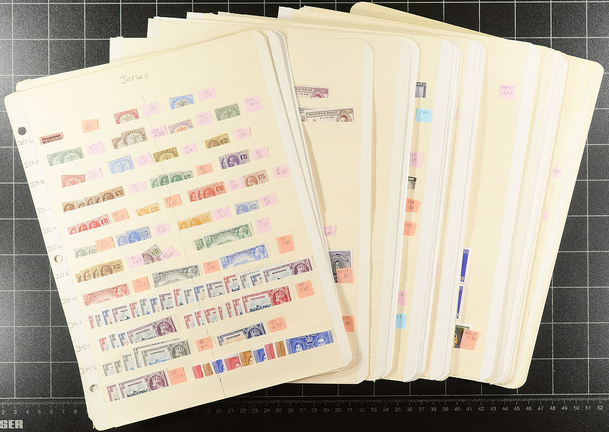 Over two dozen manila stockpages holds this collector’s well-organized mint accumulation, with sets, singles and some blocks. A mix of better and common items with up to six of most stamps (a few with a bit more). Most are hinged, but some never hinged was seen. All identified by Scott number and (older) prices. Noted five sets of the 1935 Silver Jubilee, #99a (x2), #100, #100a, #101 (x2), #142 (x2), #149 (x5), #231-#245A, #445a/460a. Estimate =