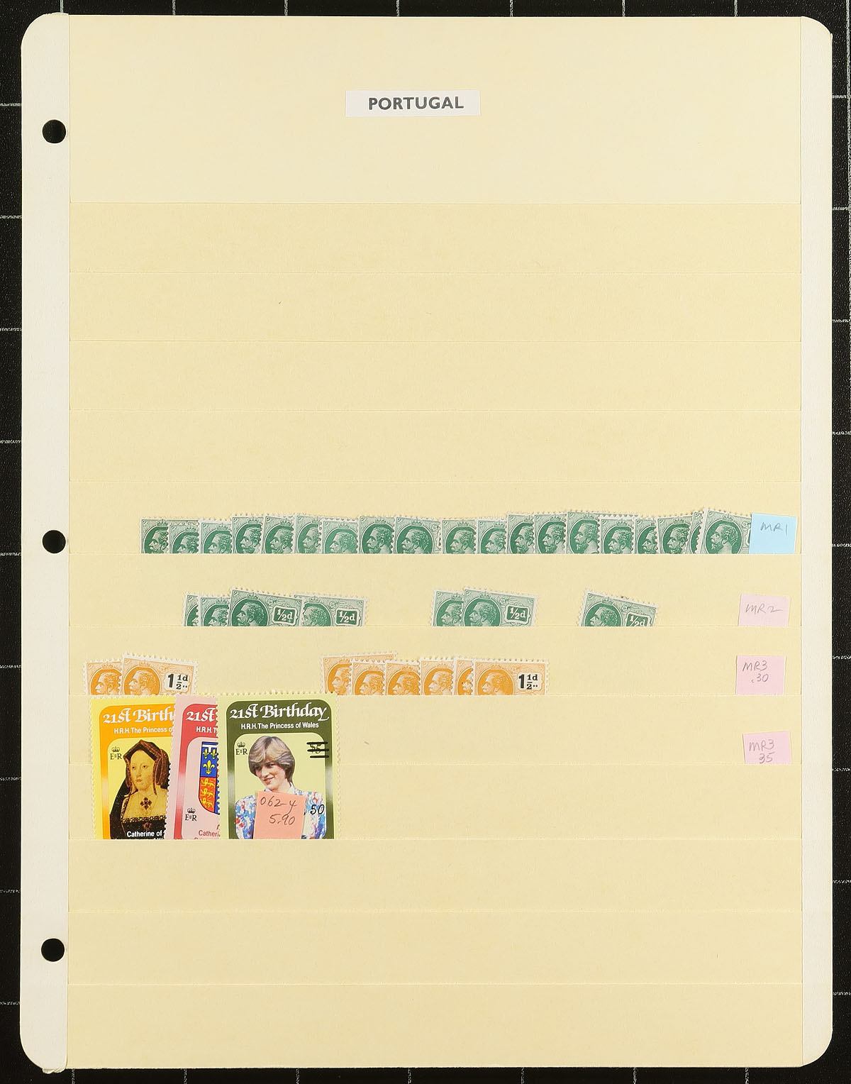 Over two dozen manila stockpages holds this collector’s well-organized mint accumulation, with sets, singles and some blocks. A mix of better and common items with up to six of most stamps (a few with a bit more). Most are hinged, but some never hinged was seen. All identified by Scott number and (older) prices. Noted five sets of the 1935 Silver Jubilee, #99a (x2), #100, #100a, #101 (x2), #142 (x2), #149 (x5), #231-#245A, #445a/460a. Estimate =