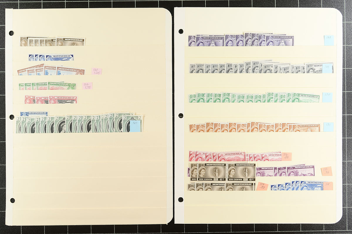 Over two dozen manila stockpages holds this collector’s well-organized mint accumulation, with sets, singles and some blocks. A mix of better and common items with up to six of most stamps (a few with a bit more). Most are hinged, but some never hinged was seen. All identified by Scott number and (older) prices. Noted five sets of the 1935 Silver Jubilee, #99a (x2), #100, #100a, #101 (x2), #142 (x2), #149 (x5), #231-#245A, #445a/460a. Estimate =