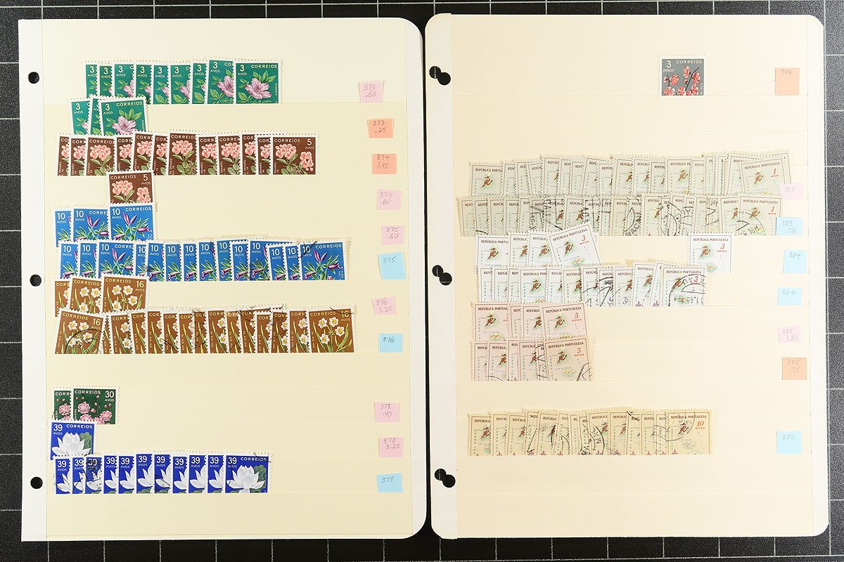 Collector accumulations of mint and used Macau are not often seen locally. This is a very well organized group on 29 manila stockpages, including good representation from the "back of the book". Some notable better includes #333, #339, #347A (x4), #365-367 (mint), #371 (4x mint), #427-428. Generally up to a dozen of a type, but a few of the more modern issues are in larger mint blocks. The catalogue value of this former Asian Portuguese colony adds up surprisingly quickly. Items individually identified. Few faults are expected. Estimate =
