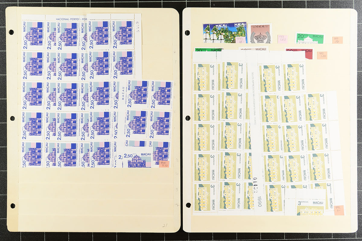 Collector accumulations of mint and used Macau are not often seen locally. This is a very well organized group on 29 manila stockpages, including good representation from the "back of the book". Some notable better includes #333, #339, #347A (x4), #365-367 (mint), #371 (4x mint), #427-428. Generally up to a dozen of a type, but a few of the more modern issues are in larger mint blocks. The catalogue value of this former Asian Portuguese colony adds up surprisingly quickly. Items individually identified. Few faults are expected. Estimate =