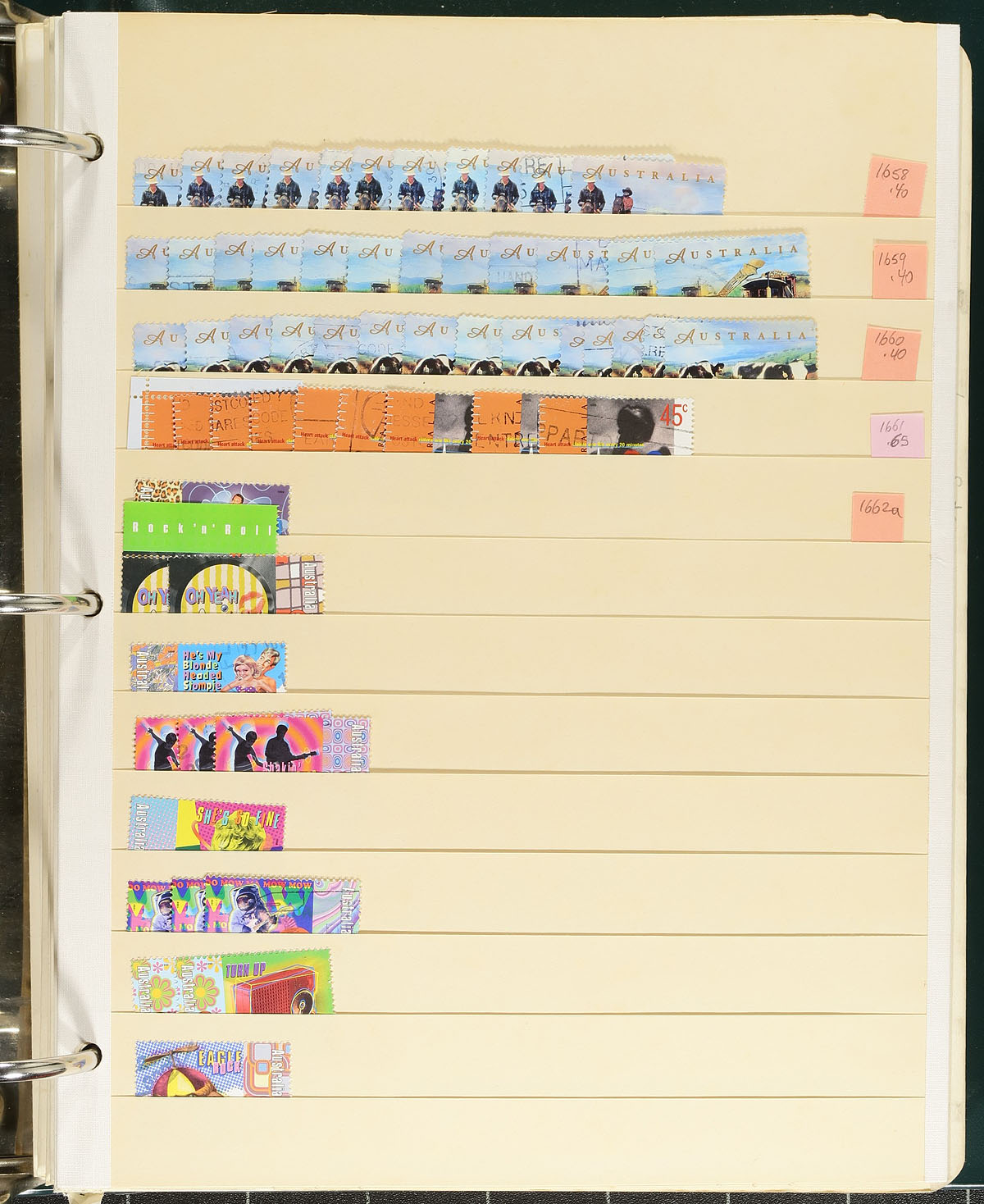 Extensive used accumulation of regular issues circa 1996 into the 2010's on over 100 manila stockpages and packed into three binders. Coverage is strong in some areas and thinner in others, not unusual give the drop in mail that accelerated in the new Millennium. There are up to a dozen of a type, including lots of sets (with many of the higher values paying overseas rates). Better singles include $10 Kakadu (#1535) and Devil’s Marbles (#1846), plus the $20 Uluru (a dozen copies of #1982). A few thousand stamps are neatly organized and identified. Mid-value stamps from this era often catalogue $2-$4. per stamp, which will lead to a massive total catalogue value. Holdings this modern are not seen very often. No souvenir sheets. Estimate =