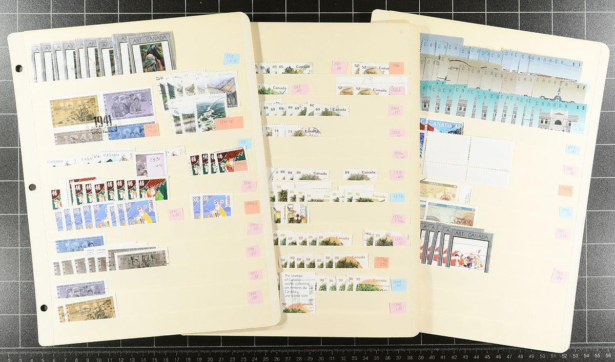 Used extravaganza part 7: Early Queen Elizabeth era up to 1997. A bit thin until the late 1960s, and we noted Expo ’70 (a number of positional pairs and blocks), 6c Xmas ’70 centre block (late usage), Geological, Olympics, $2 Commonwealth Day, Mammals (#1178c x3), Art, etc. Includes about a dozen pages that are just "tagged" stamps, where there were also "untagged" stamps issued, plus some coils (including pairs) and a number of partial to complete booklet panes. 74 manila stockpages in two binders, with at least 4,000 well organized stamps here. Quantities up to a couple of dozen of a type. Condition is pretty good and there should be some nice modern cancels here. Estimate=