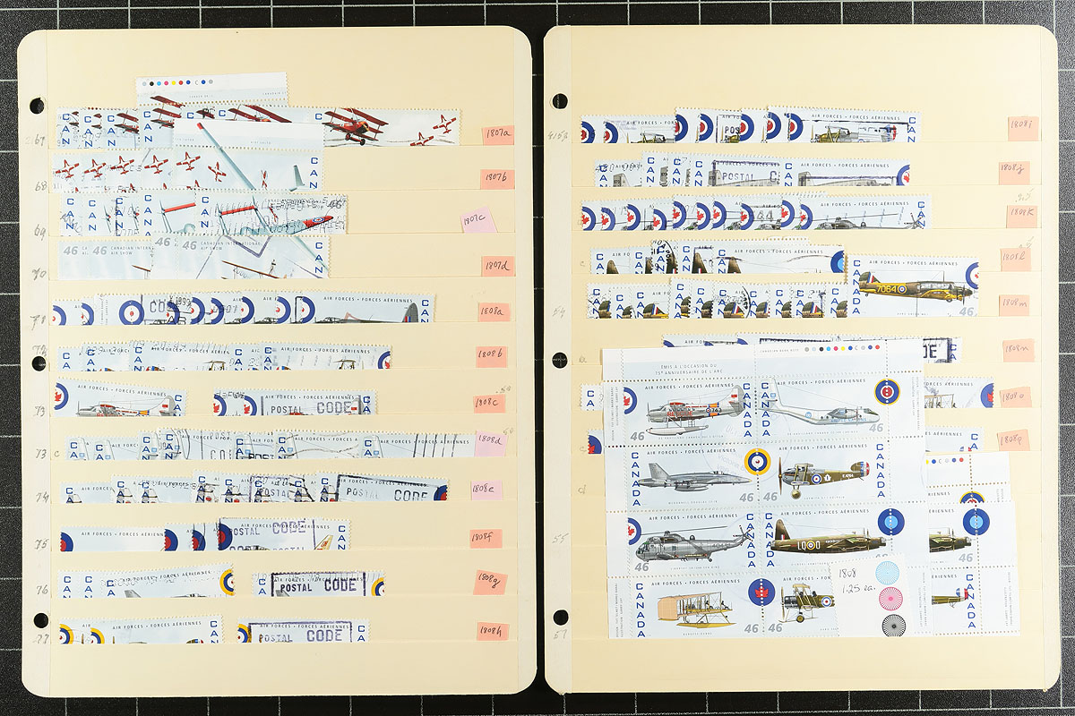 Used extravaganza part 8: Mid to late Queen Elizabeth from late 1998 to 2012. Lots of better items throughout, saw $8 Grizzly blocks of four, Art stamps, $10 Blue Whale, se-tenant, lots of US and International rate stamps, even all four of the "Write Me, Ring Me" stamps used in period. Consistent with the time period, the popular hockey-themed stamps are everywhere. 52 manila stockpages in a large binder, with at least 4,000 well organized stamps here. Quantities up to a couple of dozen of a type. Condition is pretty good and there should be some nice modern cancels here. Estimate =