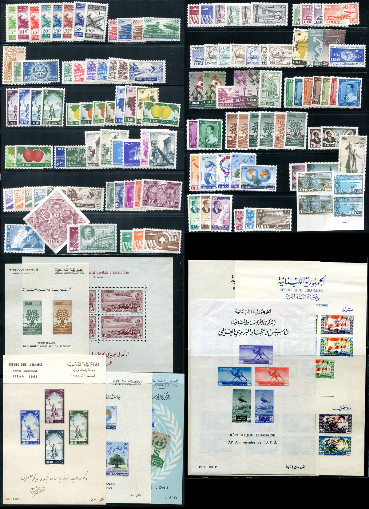 Two pages of mint airmail stamps plus a couple of pages with 8 different souvenir sheets (includes #C79a, both printings of the #C106, #C149a, etc.). There is also the red overprint on #C284-C285, see Scott footnote. A bonus duo of colour plate proof pairs of #C302 is not counted in the total catalogue value. 2024 Scott US$511.55 =
