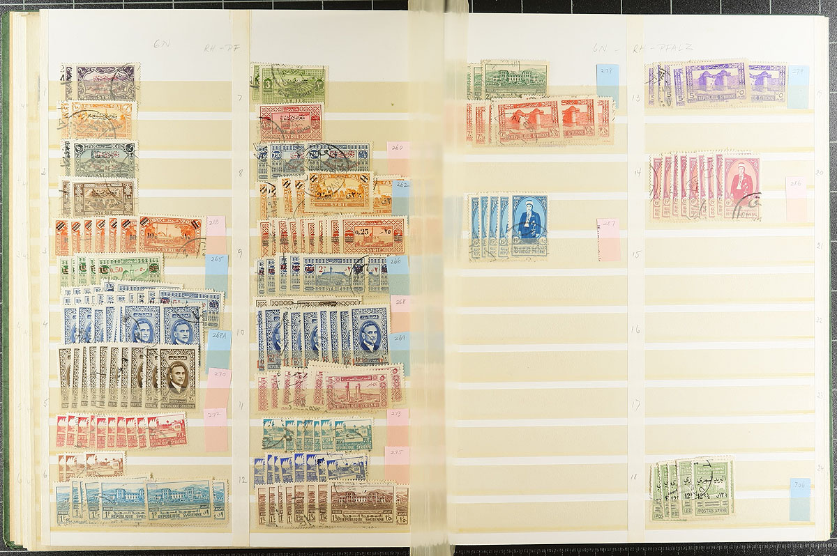 Used accumulation part 1: The period from 1919 to 1980 in an older 32-page Lighthouse stockbook. Lots of early overprints on French stamps, with individual items cataloguing up to $20.00 each. Good coverage, with up to 10 of a type, few faults and some cancel potential. One collector’s material which has never been on the market before. Estimate =