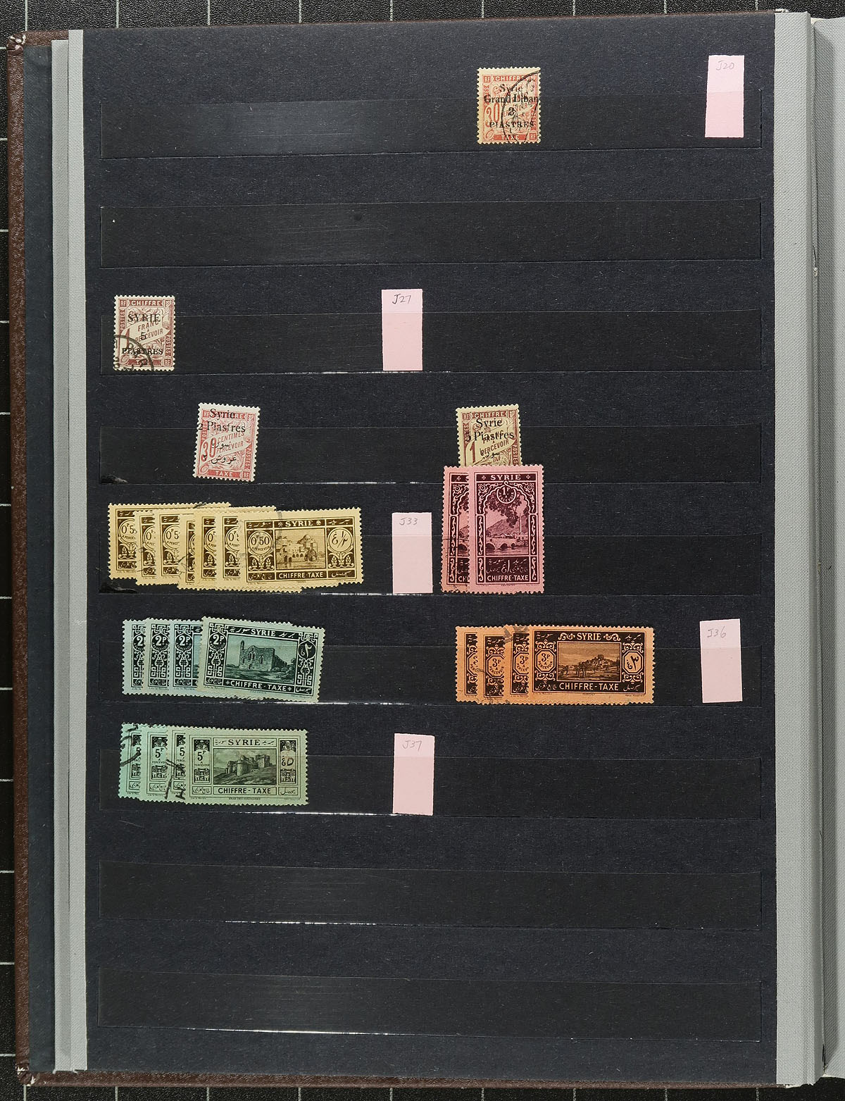Used accumulation part 3: The balance of the back of the book from Syria with postage dues, military issues and some better Postal Tax issues. There is a bit from the Arabian Administration period and then good coverage of the UAR period from the 1950's-1960's. All neatly organized in an older 24-page. Some of the postal tax stamps have catalogue values to $30.00 each. Good coverage, with up to 10 of a type and few faults. One collector’s material which has never been on the market before. Estimate =