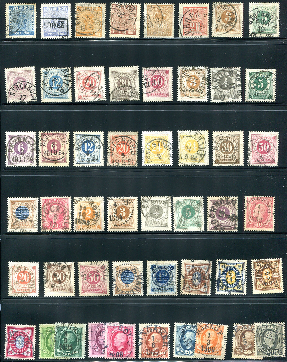Check out the great cancels on this page of used 19th century issues. Mixed in these beauties are some better singles (#20, #24, #26, #44). Appearance is above average, as is the overall condition. 2024 Scott US$501.80 =