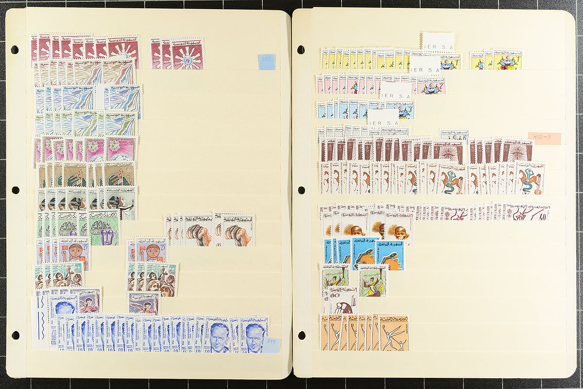 Part 1 of a clean and comprehensive mint accumulation on 24 manila stockpages. Includes many sets, some better singles, overprints, from the French colonial period to 1962. There is a small group of #1/#8, which we are presuming are reprints. Items have catalogue values up to $20.00 (#21, #139, #363A, #363B). Quantities are up to 15 of a type and there is a mix of hinged and never hinged material. A couple of thousand stamps here. You never see collector holdings of this size from this North African country. Estimate =