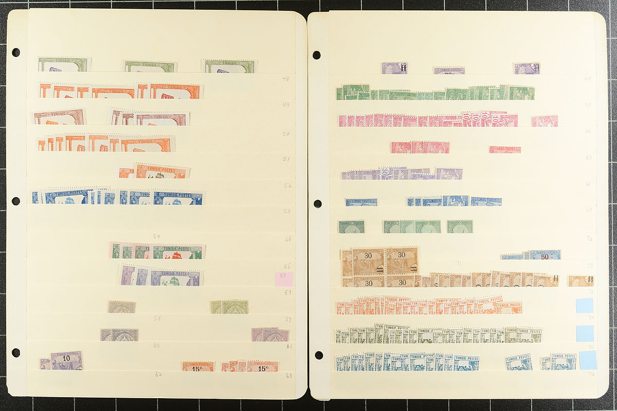 Part 1 of a clean and comprehensive mint accumulation on 24 manila stockpages. Includes many sets, some better singles, overprints, from the French colonial period to 1962. There is a small group of #1/#8, which we are presuming are reprints. Items have catalogue values up to $20.00 (#21, #139, #363A, #363B). Quantities are up to 15 of a type and there is a mix of hinged and never hinged material. A couple of thousand stamps here. You never see collector holdings of this size from this North African country. Estimate =
