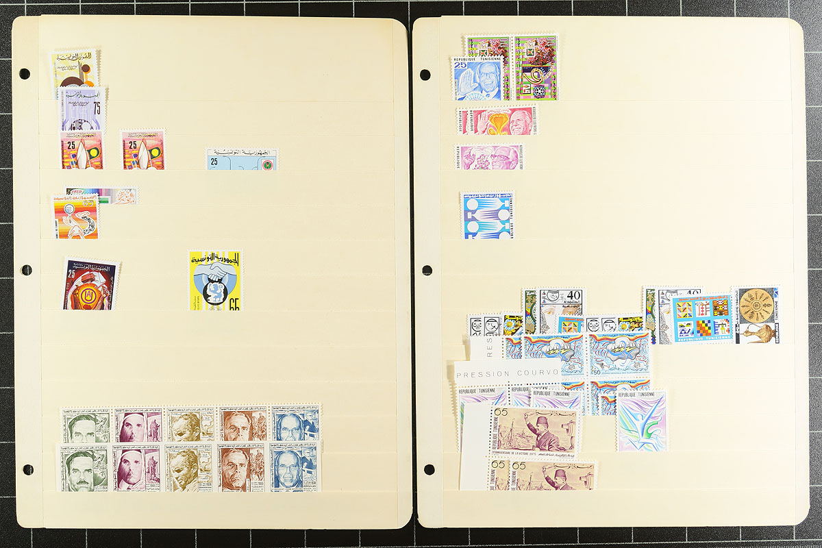 Part 2 of a clean and comprehensive mint accumulation on 27 manila stockpages. Includes many sets from 1962 to 1979. Lots of topical interest, better items here and there (blocks of 4 of #658-663). Quantities are up to 10 of a type and there is a mix of hinged and (mostly) never hinged material. A couple of thousand stamps here. You never see collector holdings of this size from this North African country. Estimate =