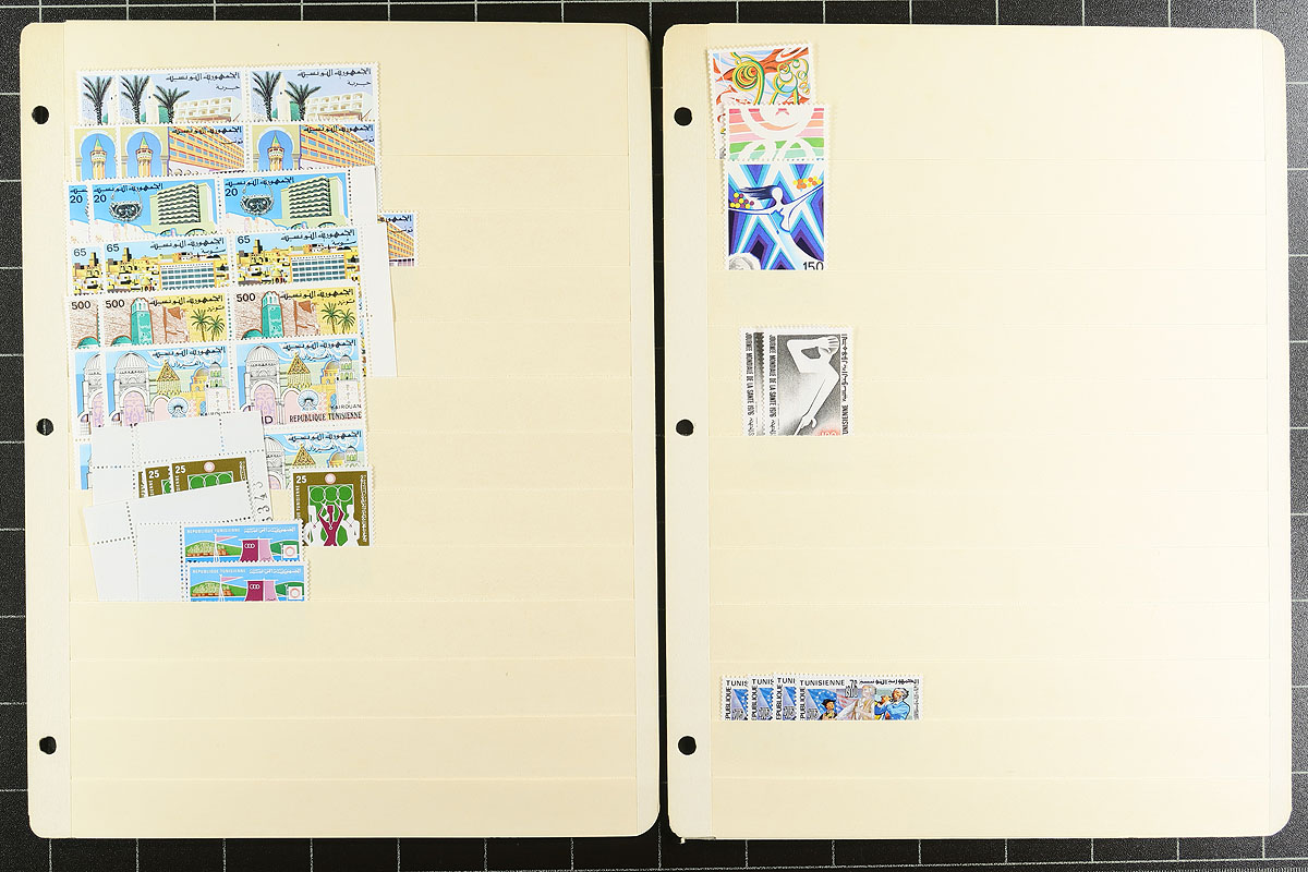 Part 2 of a clean and comprehensive mint accumulation on 27 manila stockpages. Includes many sets from 1962 to 1979. Lots of topical interest, better items here and there (blocks of 4 of #658-663). Quantities are up to 10 of a type and there is a mix of hinged and (mostly) never hinged material. A couple of thousand stamps here. You never see collector holdings of this size from this North African country. Estimate =