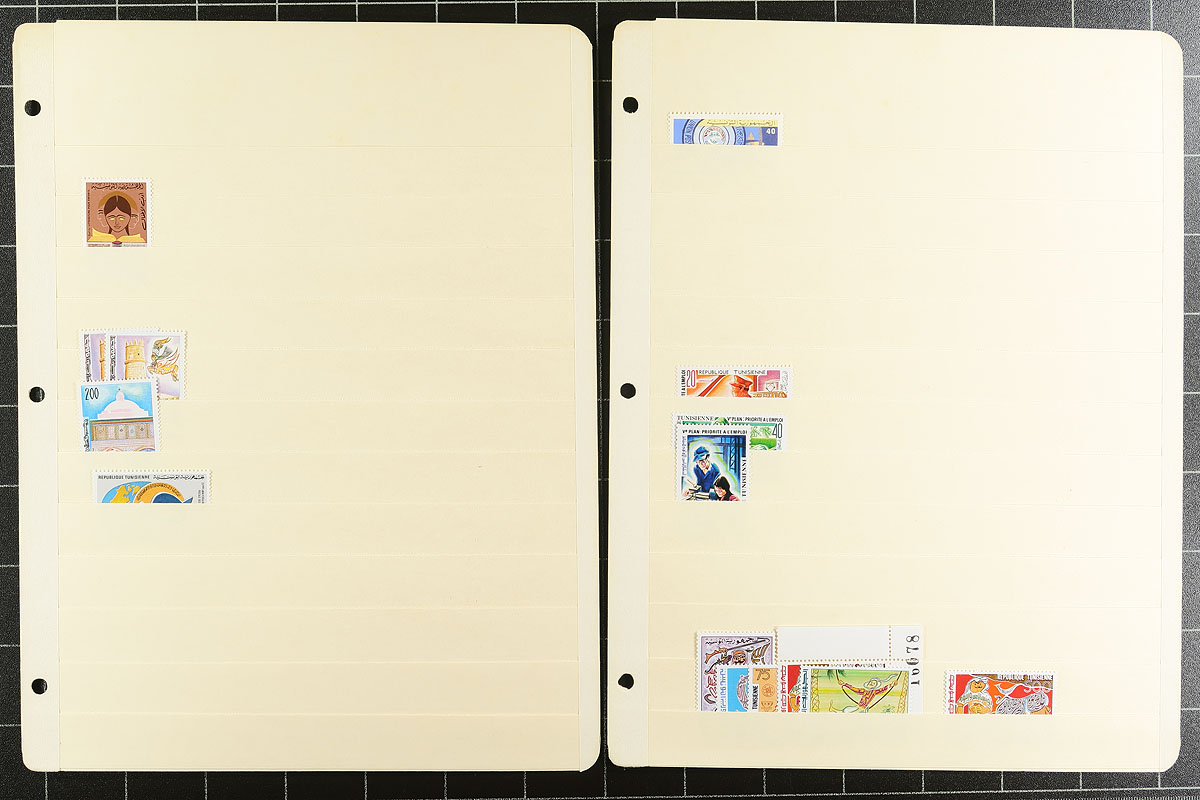 Part 2 of a clean and comprehensive mint accumulation on 27 manila stockpages. Includes many sets from 1962 to 1979. Lots of topical interest, better items here and there (blocks of 4 of #658-663). Quantities are up to 10 of a type and there is a mix of hinged and (mostly) never hinged material. A couple of thousand stamps here. You never see collector holdings of this size from this North African country. Estimate =