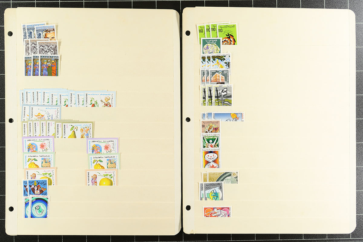 Part 2 of a clean and comprehensive mint accumulation on 27 manila stockpages. Includes many sets from 1962 to 1979. Lots of topical interest, better items here and there (blocks of 4 of #658-663). Quantities are up to 10 of a type and there is a mix of hinged and (mostly) never hinged material. A couple of thousand stamps here. You never see collector holdings of this size from this North African country. Estimate =