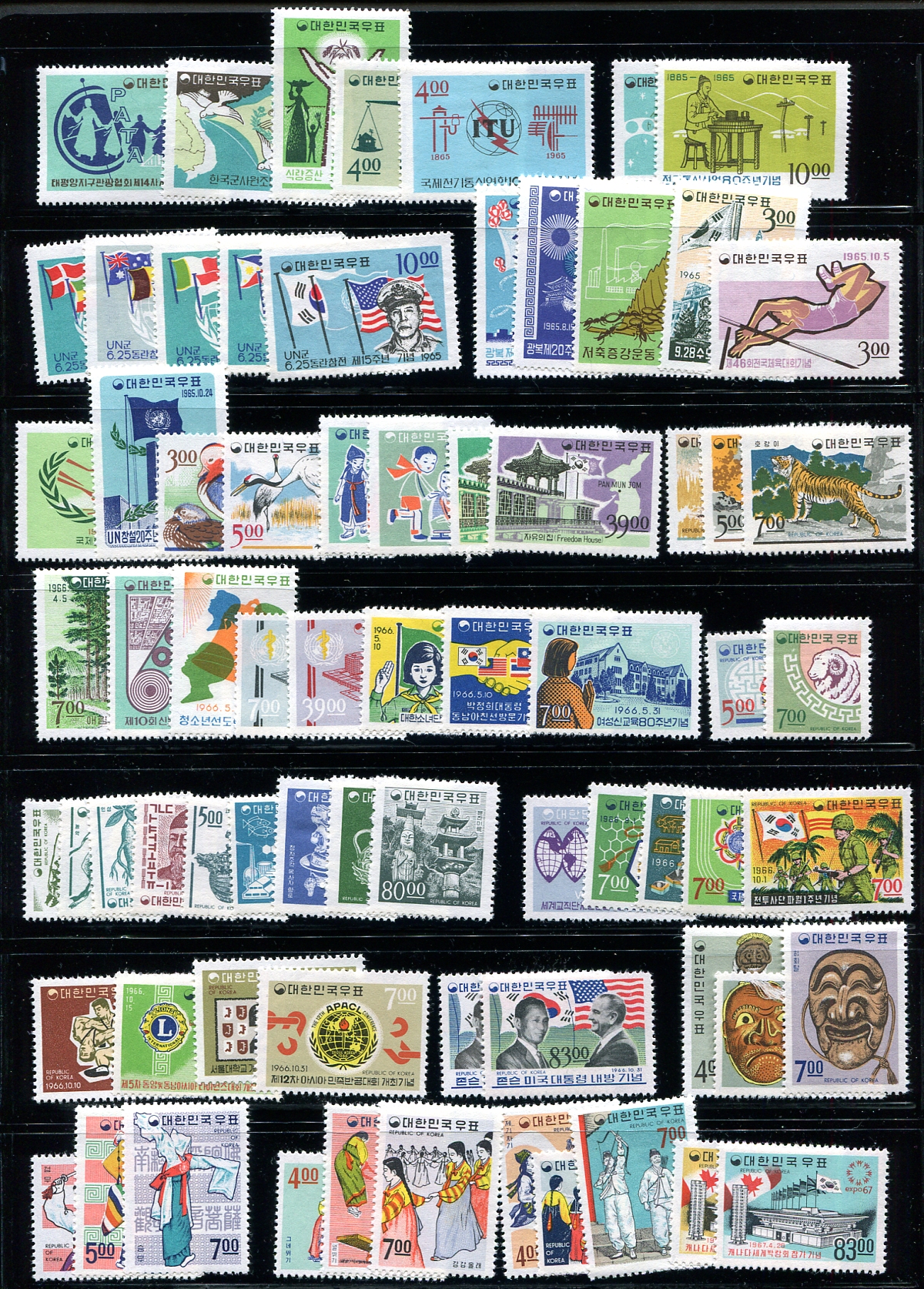 Two pages packed with better mint 1960's regular issue definitives and commemoratives. Includes many sets such as the 1962 "5 Year Plan" (#400-409), #427, #433, Scenery sets (#434-443 and #516-525). Nice condition, expect all to be hinged and be pleasantly surprised when some of them are never hinged (#374 has no gum and is not counted). Low print quantities and overlooked until relatively recently. 2024 Scott US$711.95 =