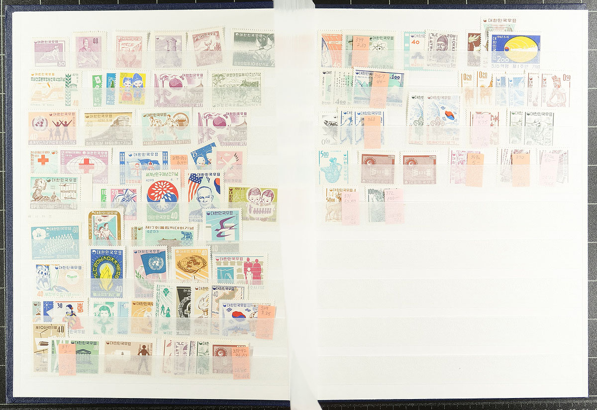 Mint collection of early Korean singles, and some sets, laid out in a near-new 32-page Lighthouse stockbook (navy blue cover). With some earlies, Japanese occupation overprints and then a good selection of post-war issues into the early 1960s. Lots of highlights, such as #79, #88-89, #95-96, #131, #355-357, #368, #370-370a, #371, #372. Most are lightly hinged. A couple of early items which are likely reprints or forgeries are not counted. 2024 Scott US$1571.70 =