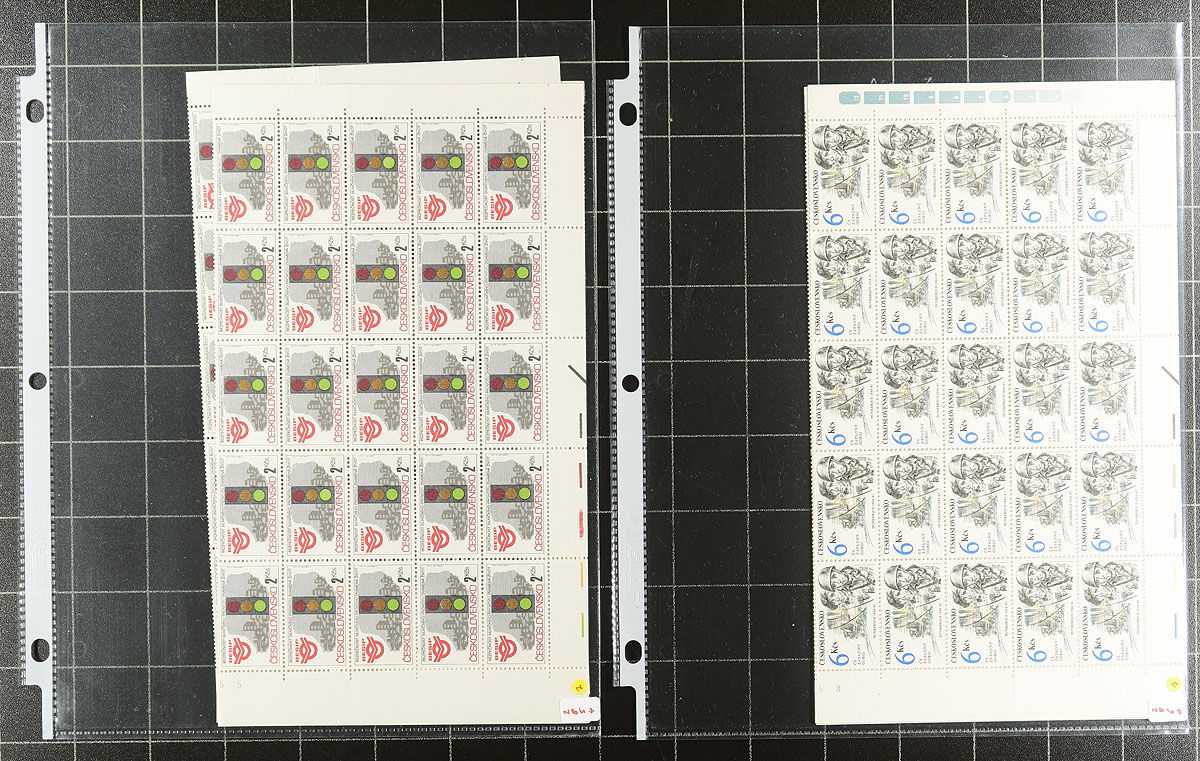Mint Never Hinged Czech Sheet / Multiple Holding. A very clean holding of 2930 stamps (23 different stamps, see inventory list), all neatly arranged and identified in page protectors within a binder. All catalogued as singles, with no premium given for sheet format / plate inscriptions etc. Owner's Scott US$3,213.00 =