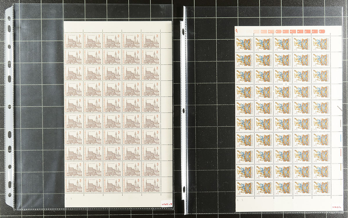 Mint Never Hinged Czech Sheet / Multiple Holding. A very clean holding of 2930 stamps (23 different stamps, see inventory list), all neatly arranged and identified in page protectors within a binder. All catalogued as singles, with no premium given for sheet format / plate inscriptions etc. Owner's Scott US$3,213.00 =