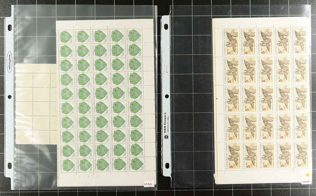 Mint Never Hinged Czech Sheet / Multiple Holding. A very clean holding of 2930 stamps (23 different stamps, see inventory list), all neatly arranged and identified in page protectors within a binder. All catalogued as singles, with no premium given for sheet format / plate inscriptions etc. Owner's Scott US$3,213.00 =
