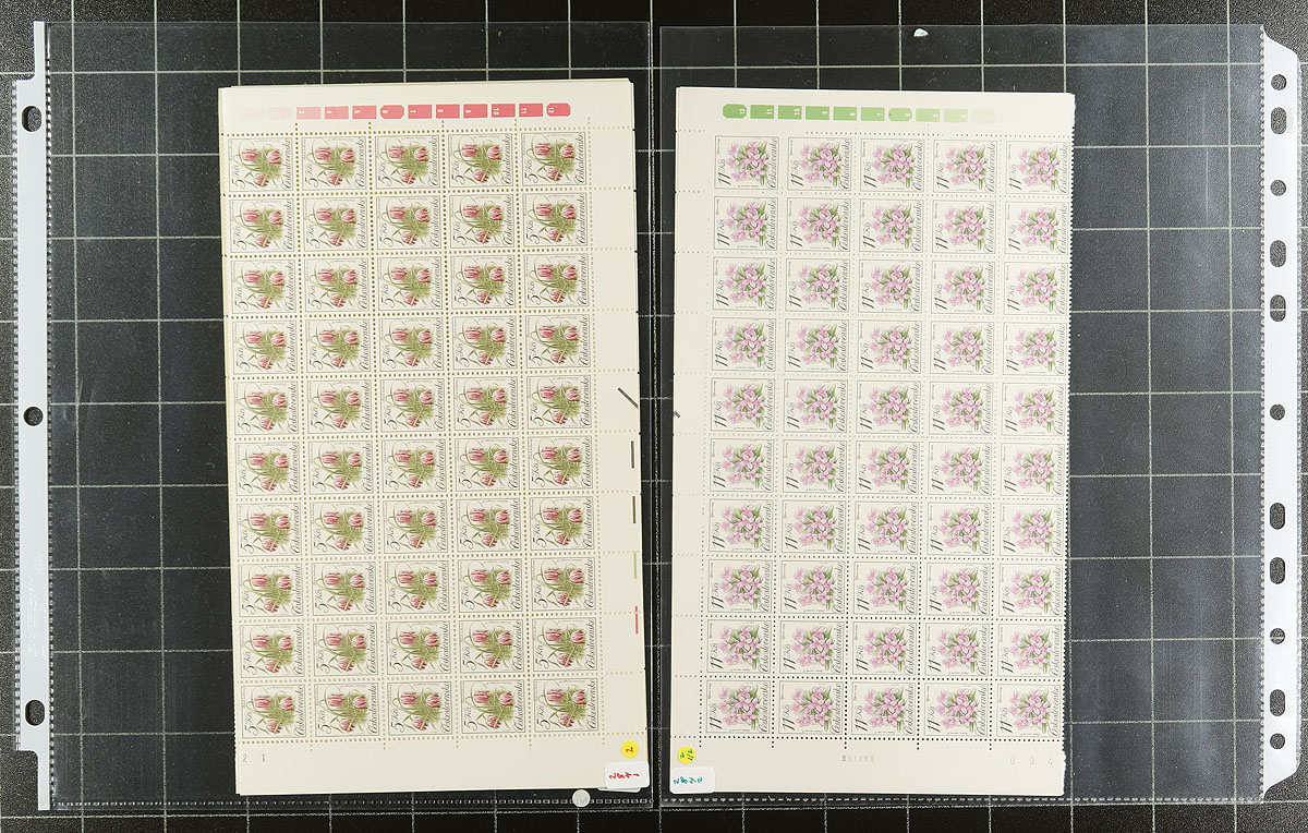 Mint Never Hinged Czech Sheet / Multiple Holding. A very clean holding of 2930 stamps (23 different stamps, see inventory list), all neatly arranged and identified in page protectors within a binder. All catalogued as singles, with no premium given for sheet format / plate inscriptions etc. Owner's Scott US$3,213.00 =
