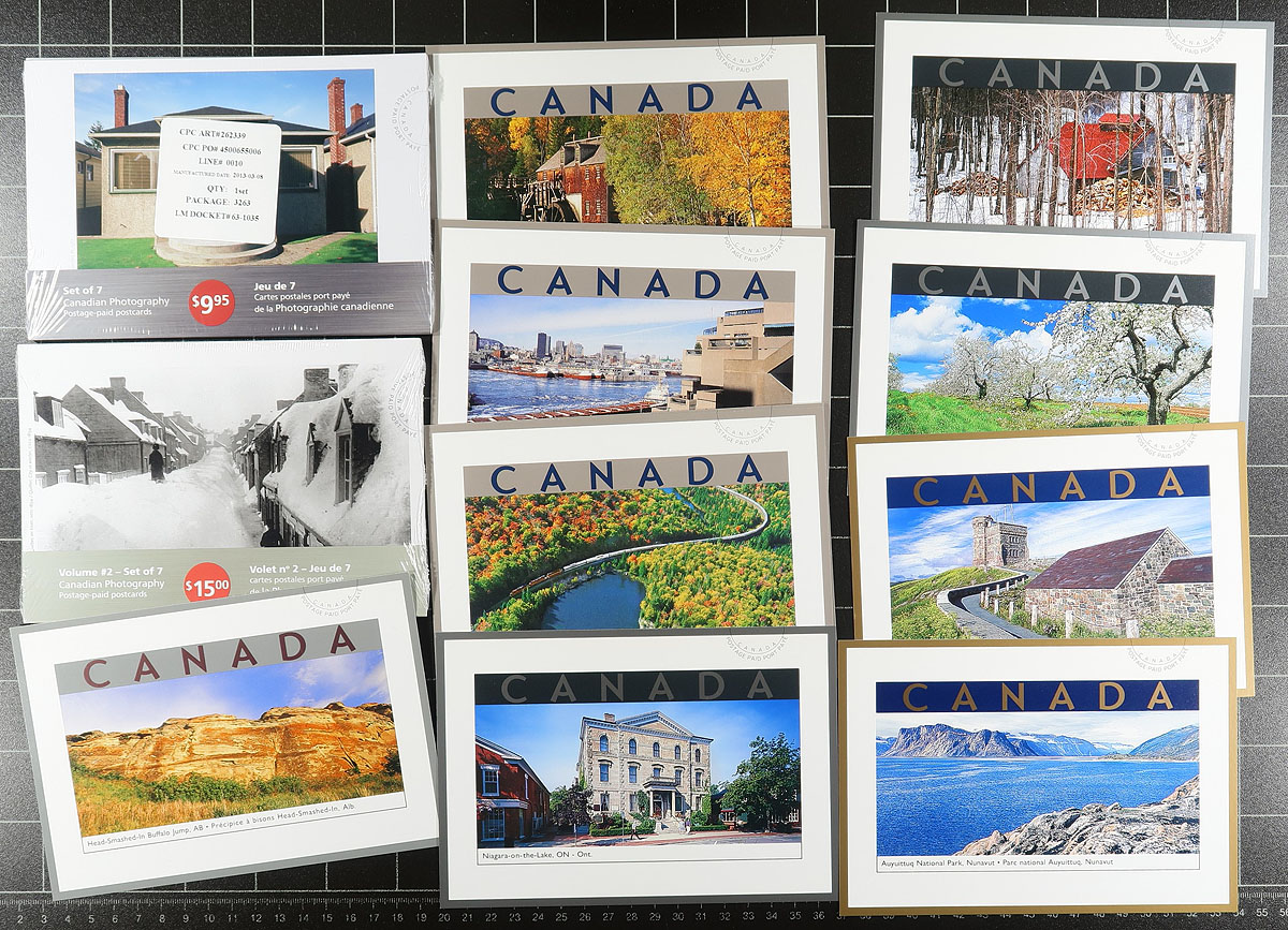 Postal Stationery Post Office issued prepaid postcards. An attractive selection of 160 postcards (including many sealed packs) from roughly 2005 til 2014. These wonderfully illustrated postcards are good for mailing anywhere in the world. So potentially, they have a value of $3.65 each (the international letter-rate). There is an amazing array of topics covered here including UNESCO, Canadian Photography, Miss Supertest, Wildlife, Haunted Canada etc (to name a few). Total potential face value =