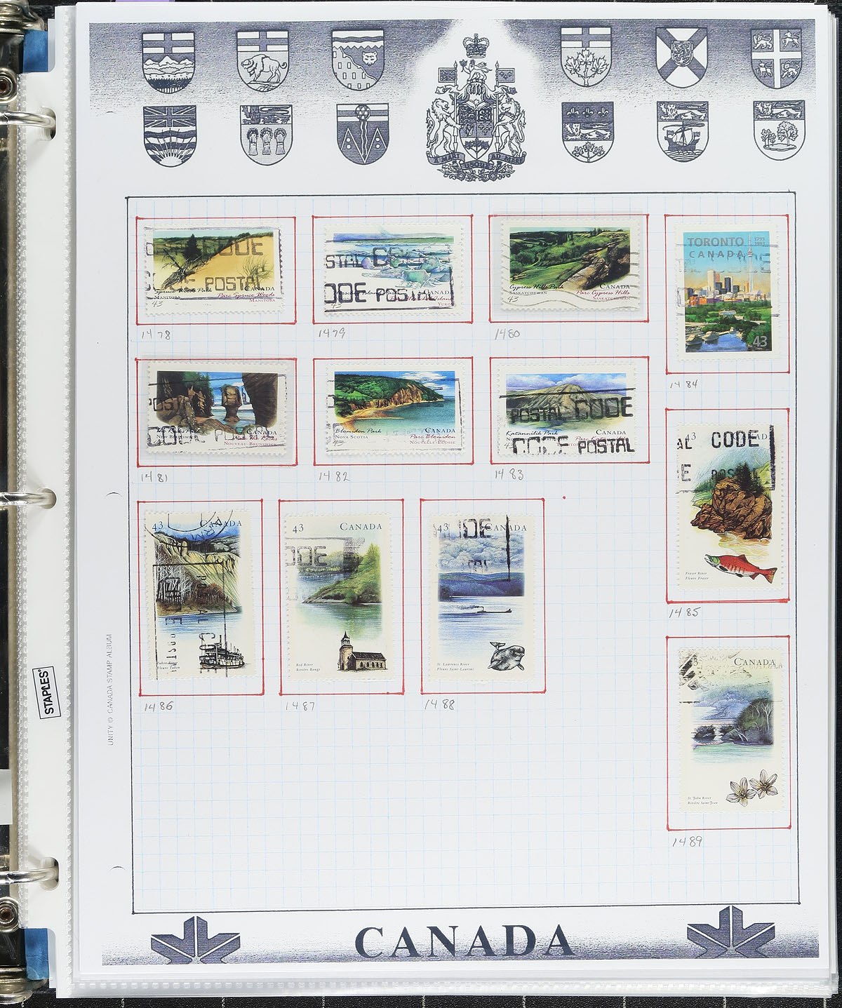 Attractive primarily Elizabethan 1949-2012 used collection, arranged on collector printed pages, in sheet-protectors in three Minkus Canada binders. A seemingly "one of each", with a total of 2425 stamps, which is quite complete for the first 50 years, then about 50% full post-2000 and includes some "back of the book" (postage dues, officials etc). A good solid used collection for the period. Estimate =