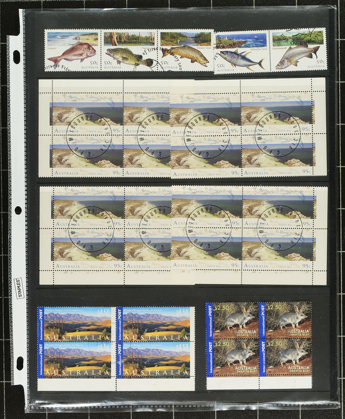 Assembly of 171 stamps + 5 souvenir sheets 1996 - 2015 used, all specialty material including perf issues (no die cuts here!), high value blocks, gutter pairs, etc. Not the run-of-the-mill lot. Quite a few with philatelic cancels, but that may be the only way they come. 2025 Scott US351.00 =