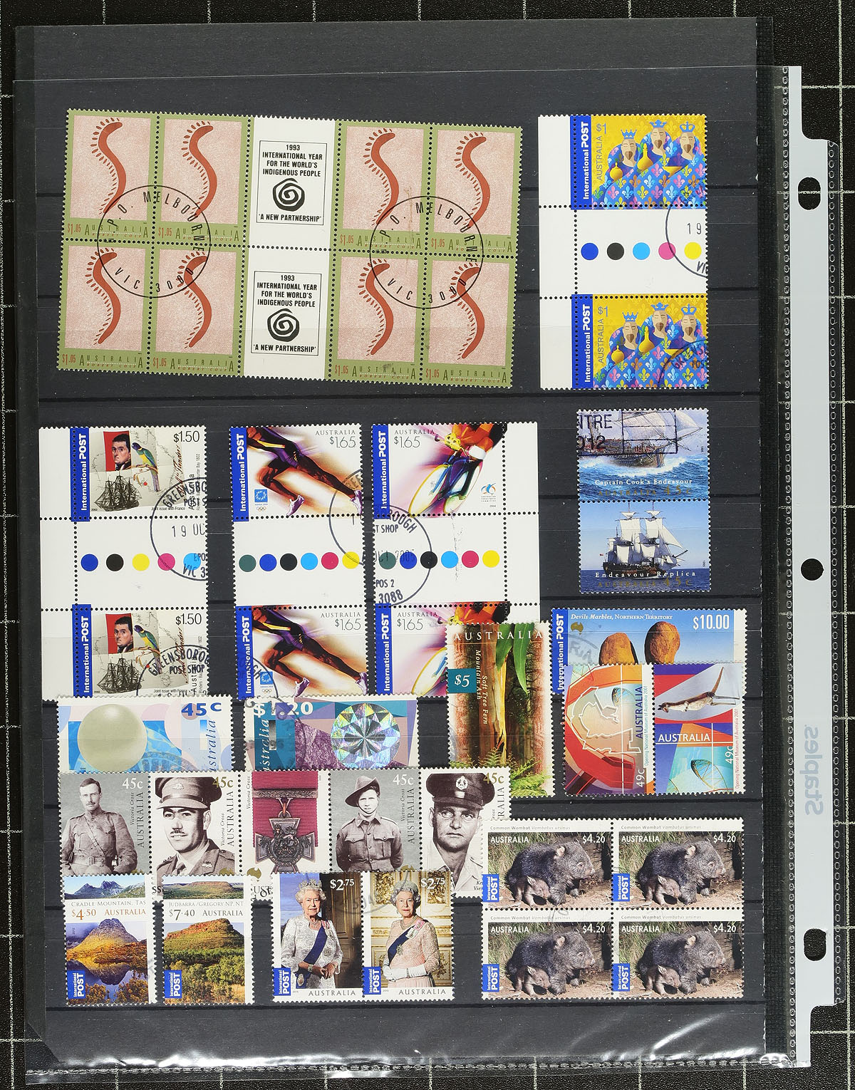Assembly of 171 stamps + 5 souvenir sheets 1996 - 2015 used, all specialty material including perf issues (no die cuts here!), high value blocks, gutter pairs, etc. Not the run-of-the-mill lot. Quite a few with philatelic cancels, but that may be the only way they come. 2025 Scott US351.00 =
