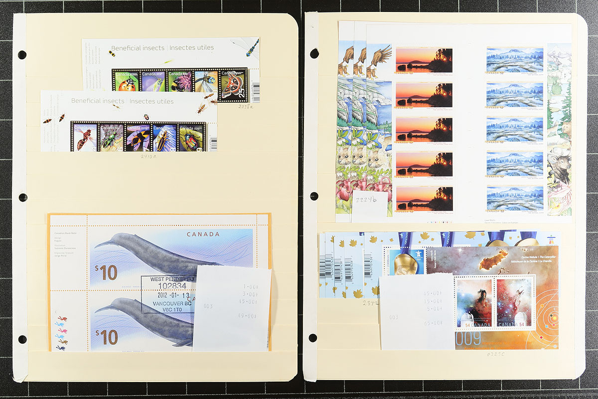 Mega Mint Holding. The continuation from this high-quality holding, with 1990-2009 issues, arranged on manila stocksheets withing a binder. Several better items of note including booklets, booklet panes, sheets, souvenir sheets, early die-cuts, self-adhesive, $8.00 Grizzly and Greeting Stamp booklets. Face value alone is $256.35. Owner's Unitrade =