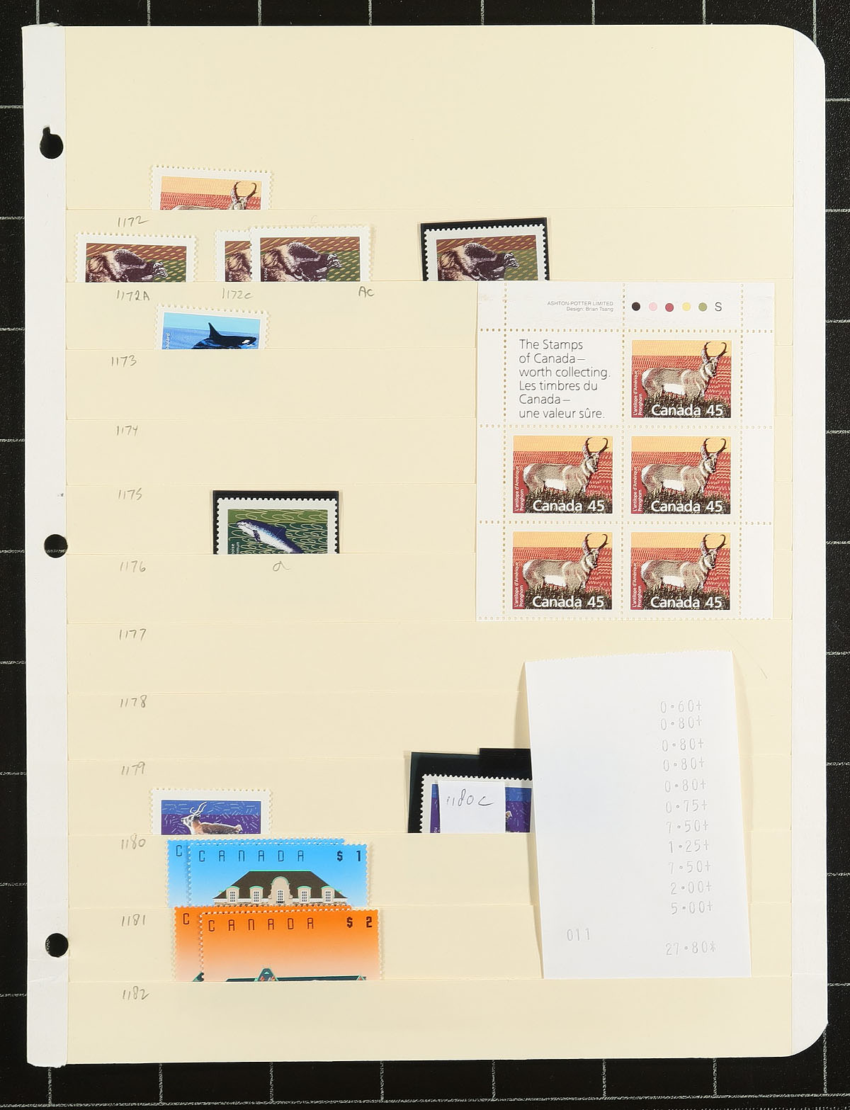 Mega Mint Holding. The next installment of this mint holding, this time 1977-1989, arranged on manila stocksheets within a binder. Noted se-tenant, "Wildflowers" definitves, "Mammals", high-values etc. All neatly identified and arranged, accurately on the pages. Cataloged by the previous owner, using only the lowest value given, so plenty of upside to the valuation count. Owner's Unitrade =