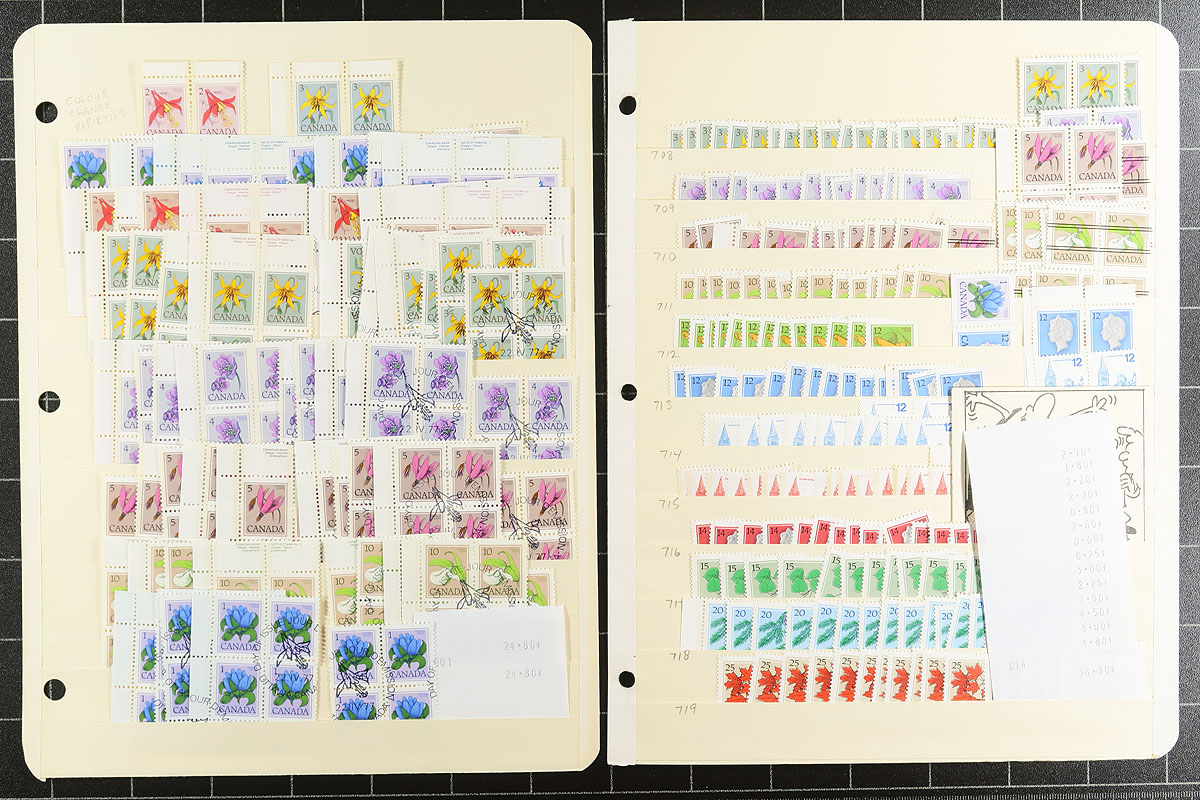 Mega Mint Holding. The next installment of this mint holding, this time 1977-1989, arranged on manila stocksheets within a binder. Noted se-tenant, "Wildflowers" definitves, "Mammals", high-values etc. All neatly identified and arranged, accurately on the pages. Cataloged by the previous owner, using only the lowest value given, so plenty of upside to the valuation count. Owner's Unitrade =