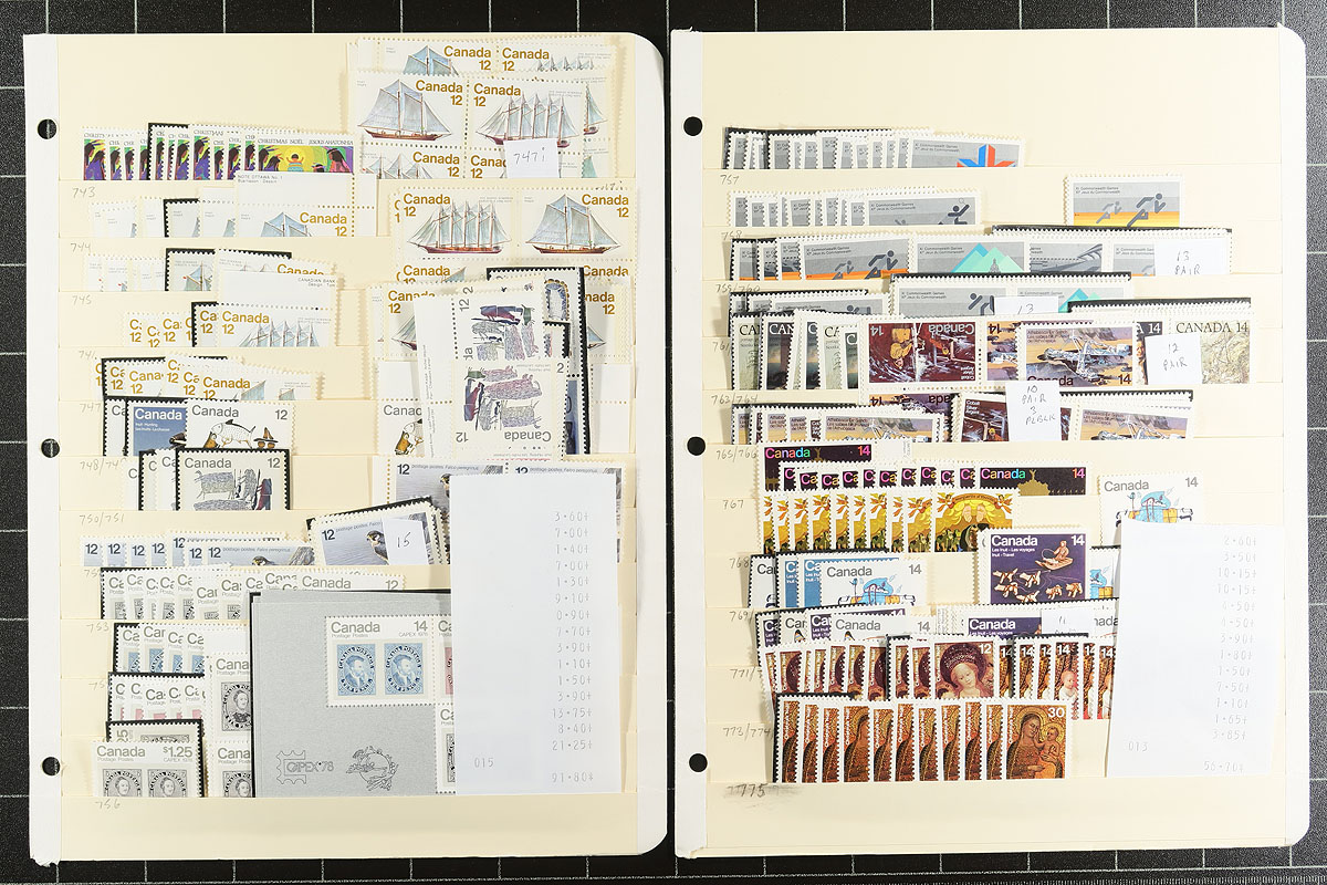 Mega Mint Holding. The next installment of this mint holding, this time 1977-1989, arranged on manila stocksheets within a binder. Noted se-tenant, "Wildflowers" definitves, "Mammals", high-values etc. All neatly identified and arranged, accurately on the pages. Cataloged by the previous owner, using only the lowest value given, so plenty of upside to the valuation count. Owner's Unitrade =