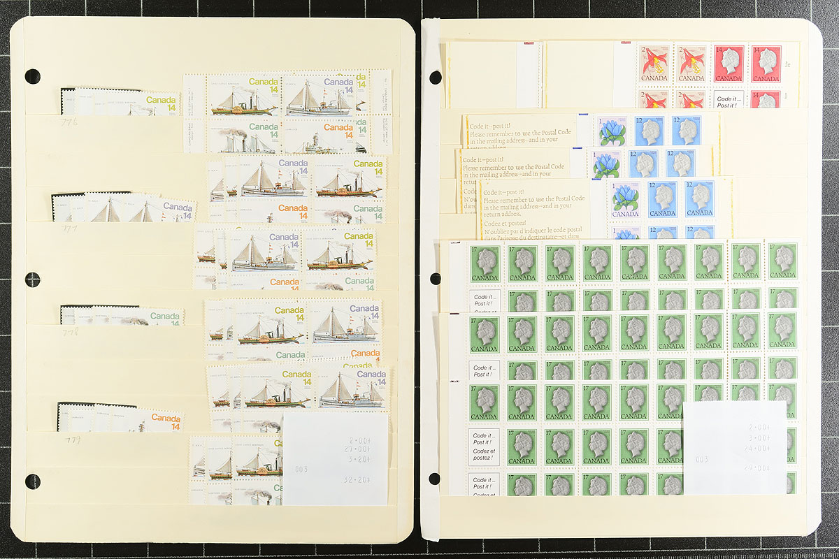 Mega Mint Holding. The next installment of this mint holding, this time 1977-1989, arranged on manila stocksheets within a binder. Noted se-tenant, "Wildflowers" definitves, "Mammals", high-values etc. All neatly identified and arranged, accurately on the pages. Cataloged by the previous owner, using only the lowest value given, so plenty of upside to the valuation count. Owner's Unitrade =