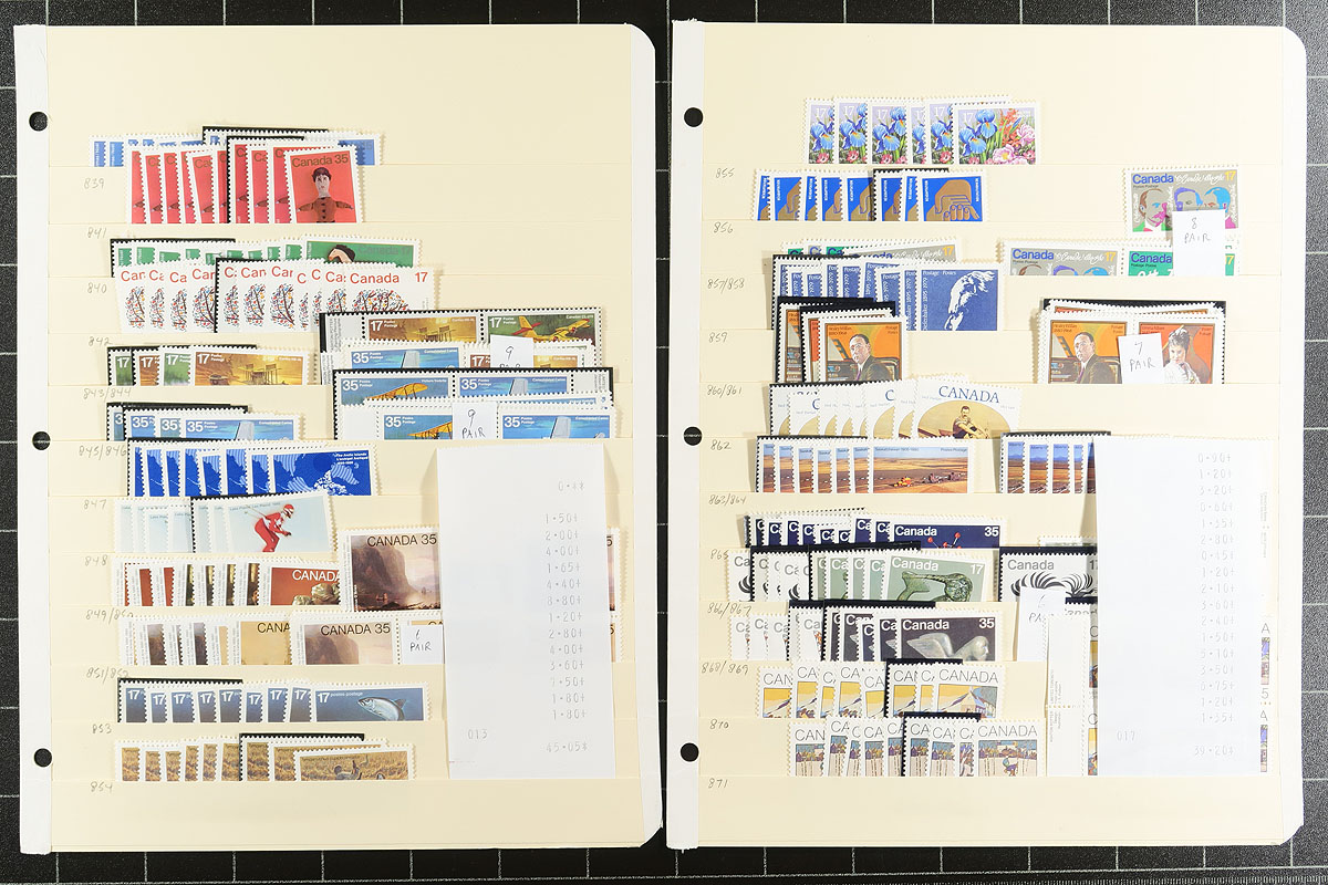 Mega Mint Holding. The next installment of this mint holding, this time 1977-1989, arranged on manila stocksheets within a binder. Noted se-tenant, "Wildflowers" definitves, "Mammals", high-values etc. All neatly identified and arranged, accurately on the pages. Cataloged by the previous owner, using only the lowest value given, so plenty of upside to the valuation count. Owner's Unitrade =