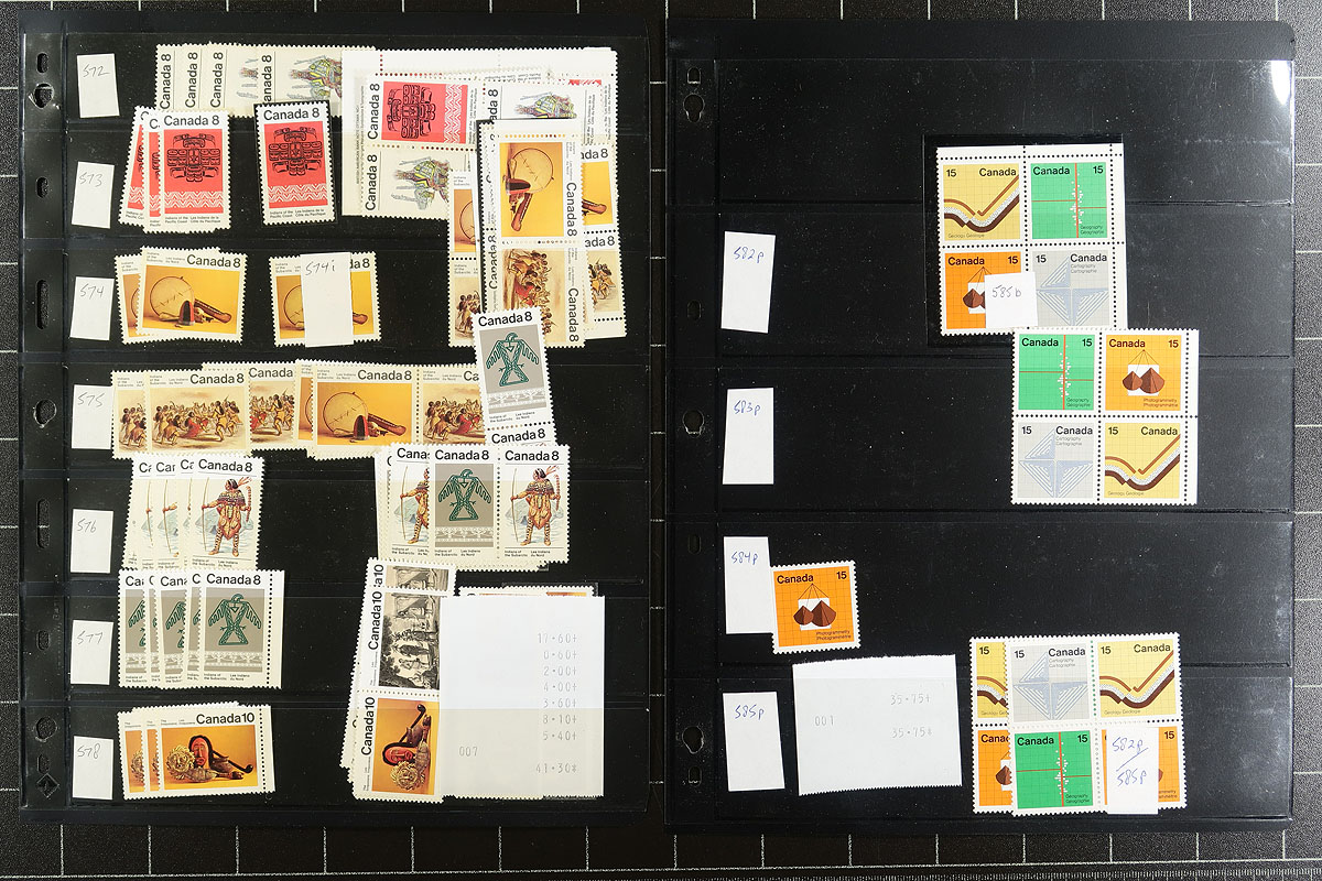 Mega Mint Holding. A lovely mint Never Hinged holding / stock of 1962-1976 Canadian stamps, including many plate blocks, multiples, varieties etc. Housed on 30 vario stockpages, within a binder, we noted many better items such as "Cello Paks", paper florescence, booklets, EXPO 70', mid/high value definitives and the 1975/1976 Olympic high-values. Cataloged by the previous owner, using only the lowest value given, so plenty of upside to the valuation count. Owner's Unitrade =