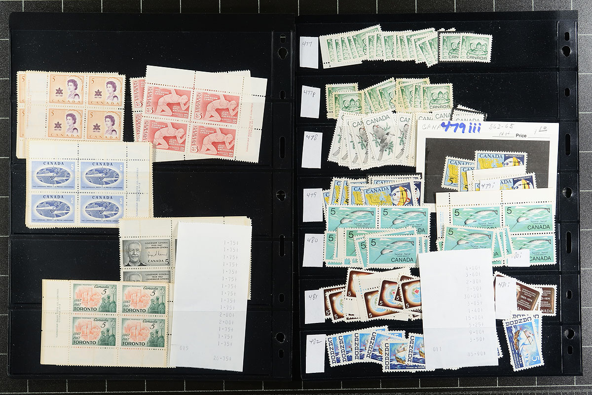 Mega Mint Holding. A lovely mint Never Hinged holding / stock of 1962-1976 Canadian stamps, including many plate blocks, multiples, varieties etc. Housed on 30 vario stockpages, within a binder, we noted many better items such as "Cello Paks", paper florescence, booklets, EXPO 70', mid/high value definitives and the 1975/1976 Olympic high-values. Cataloged by the previous owner, using only the lowest value given, so plenty of upside to the valuation count. Owner's Unitrade =