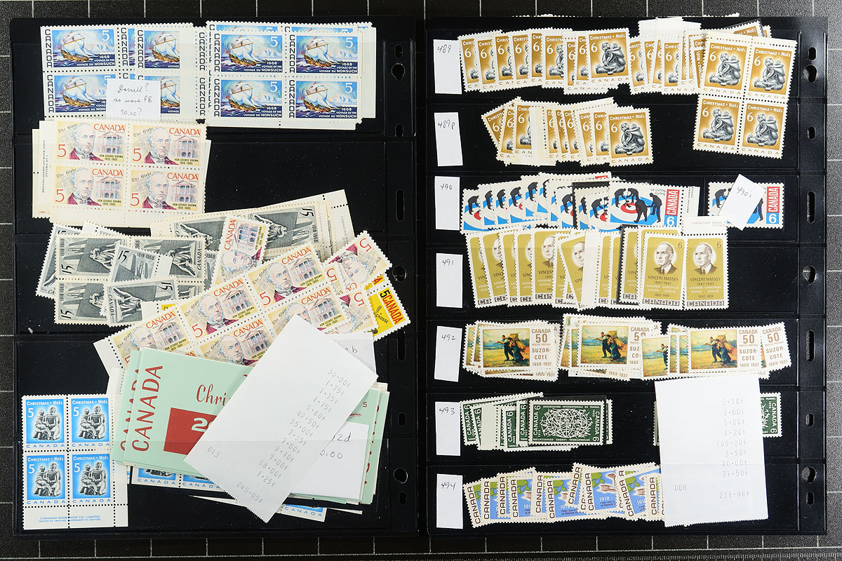 Mega Mint Holding. A lovely mint Never Hinged holding / stock of 1962-1976 Canadian stamps, including many plate blocks, multiples, varieties etc. Housed on 30 vario stockpages, within a binder, we noted many better items such as "Cello Paks", paper florescence, booklets, EXPO 70', mid/high value definitives and the 1975/1976 Olympic high-values. Cataloged by the previous owner, using only the lowest value given, so plenty of upside to the valuation count. Owner's Unitrade =