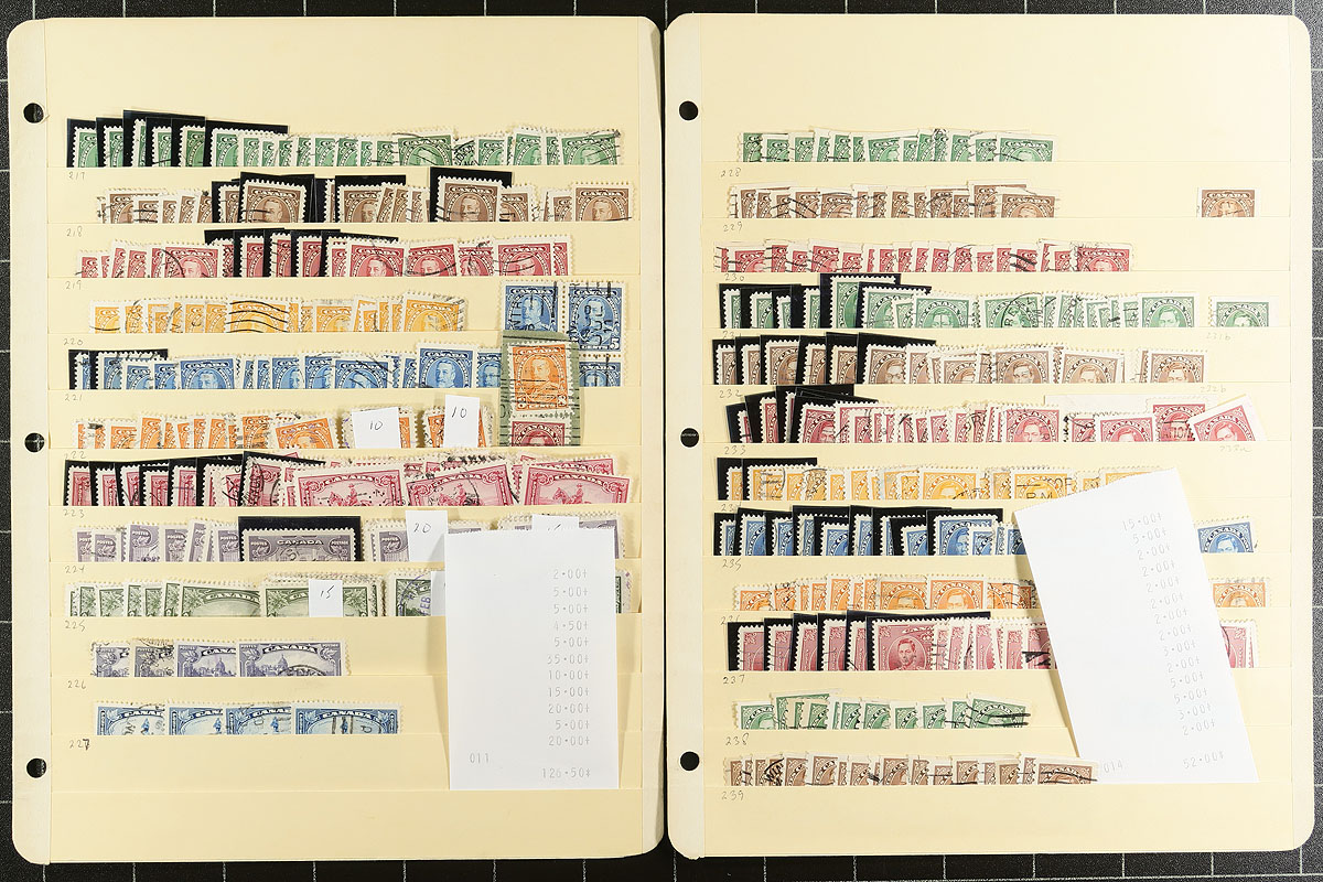 A high-quality old-time stock of early used Canadian material from 1859 "Cents" to the QEII Karsh issue, arranged on 27 manila pages, withing a binder. Loads of value here, and although the odd fault my be present in the earliest material, overall this is a very clean group. Lots of better postmarks noted, and a winters worth of "fly-specking" for the adventurous collector. Cataloged by the previous owner, using only the lowest value given, so plenty of upside to the valuation count. Owner's Unitrade =